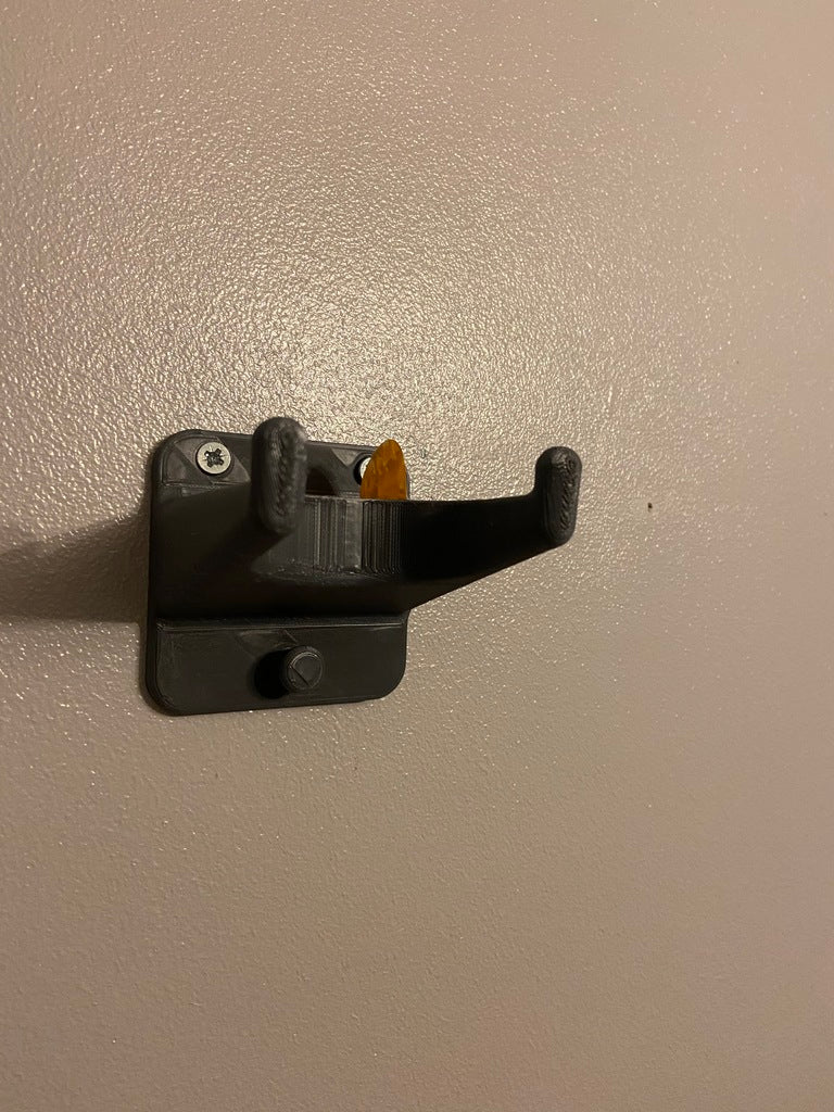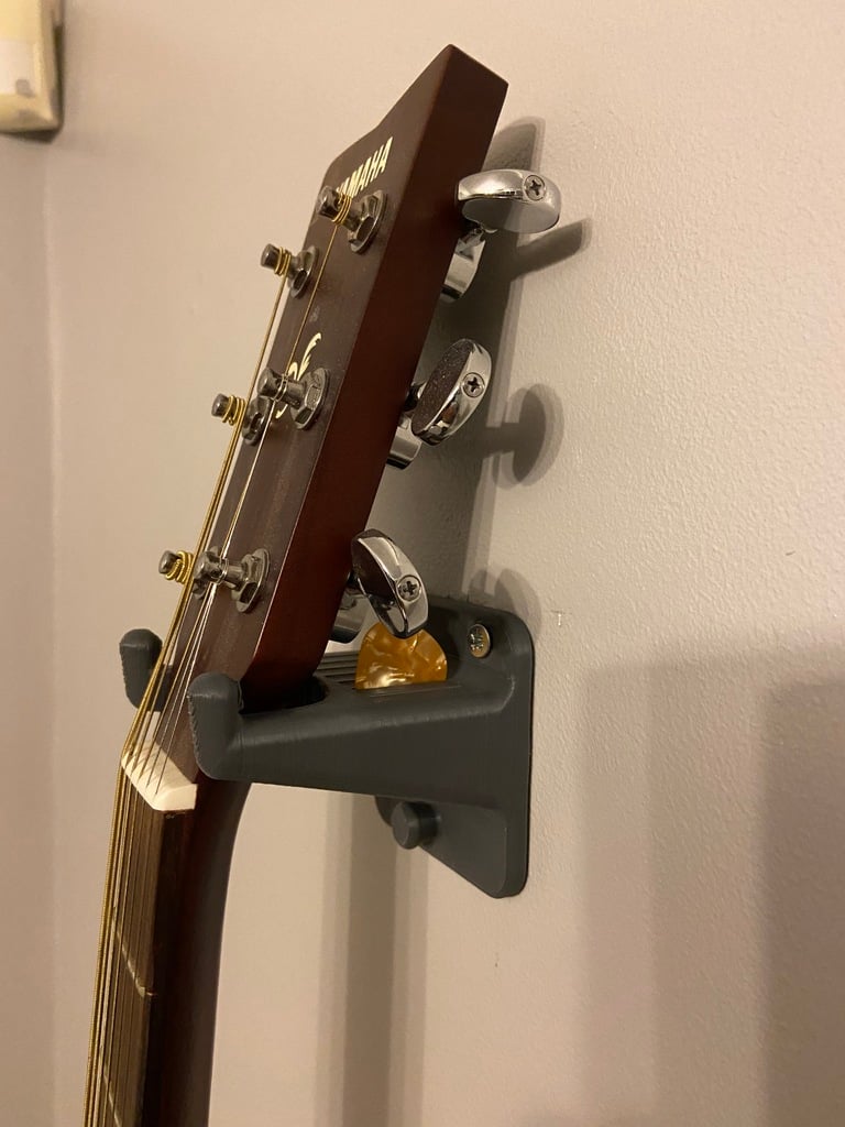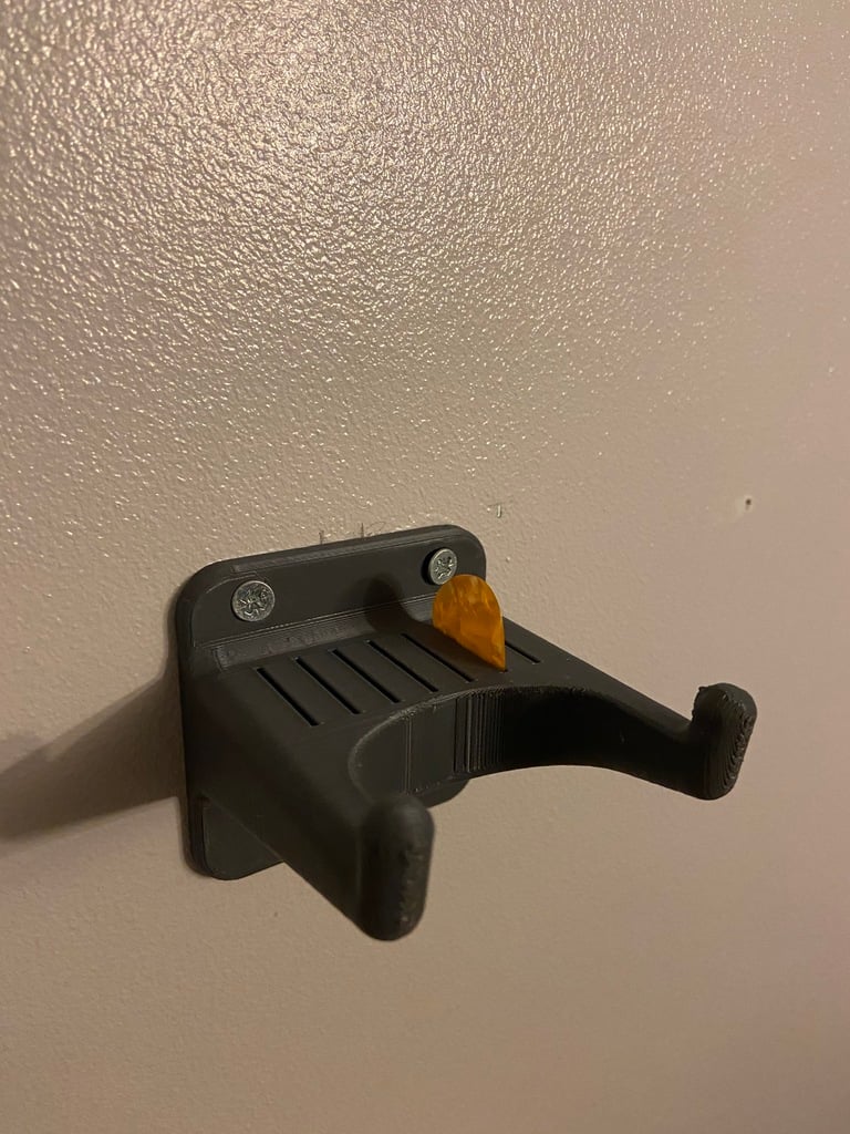 De Guitar Wall Mount is een gemakkelijke en effectieve manier om je gitaar op te bergen. Met deze wandmontage kun je je gitaar gemakkelijk ophangen, wat niet alleen vloerruimte vrijmaakt, maar ook je gitaar beschermt tegen mogelijke schade door rondslingeren. De houder heeft ook een ingebouwde ruimte om een aantal van je favoriete gitaarplectrums te bewaren en een plek om je riem op te hangen.