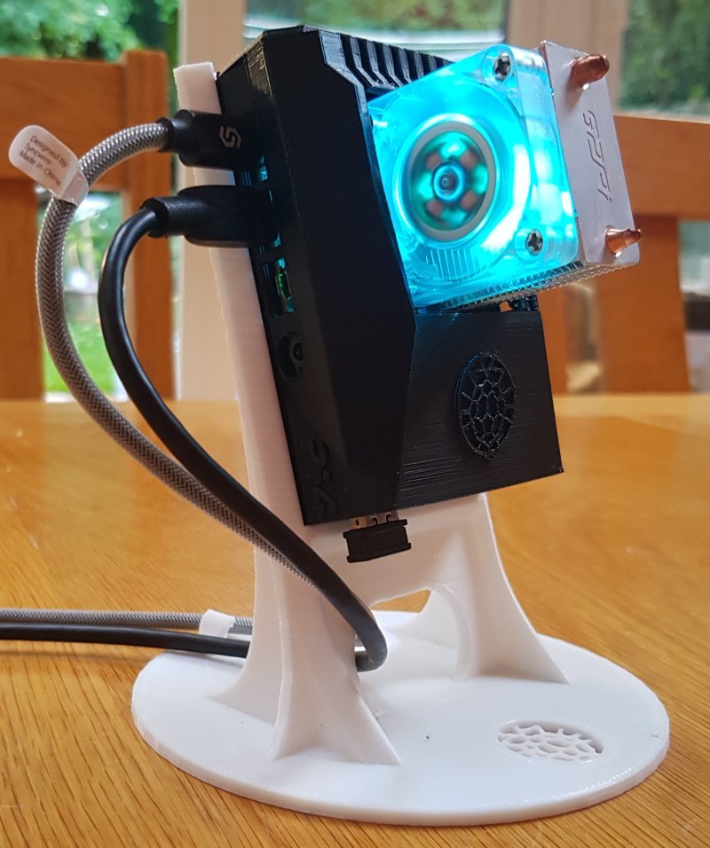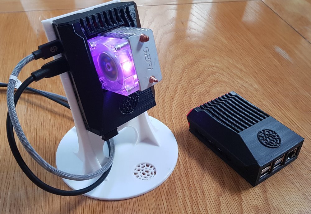 Overklokte Raspberry Pi 4 behuizing met SSD houder en standaard