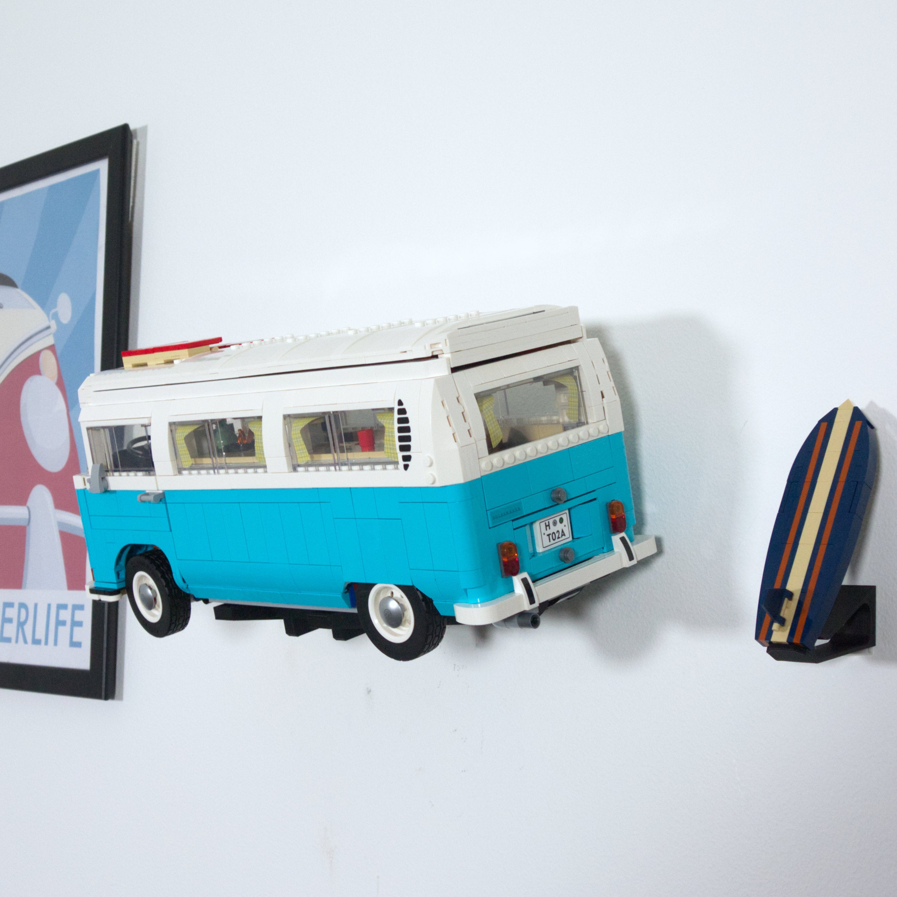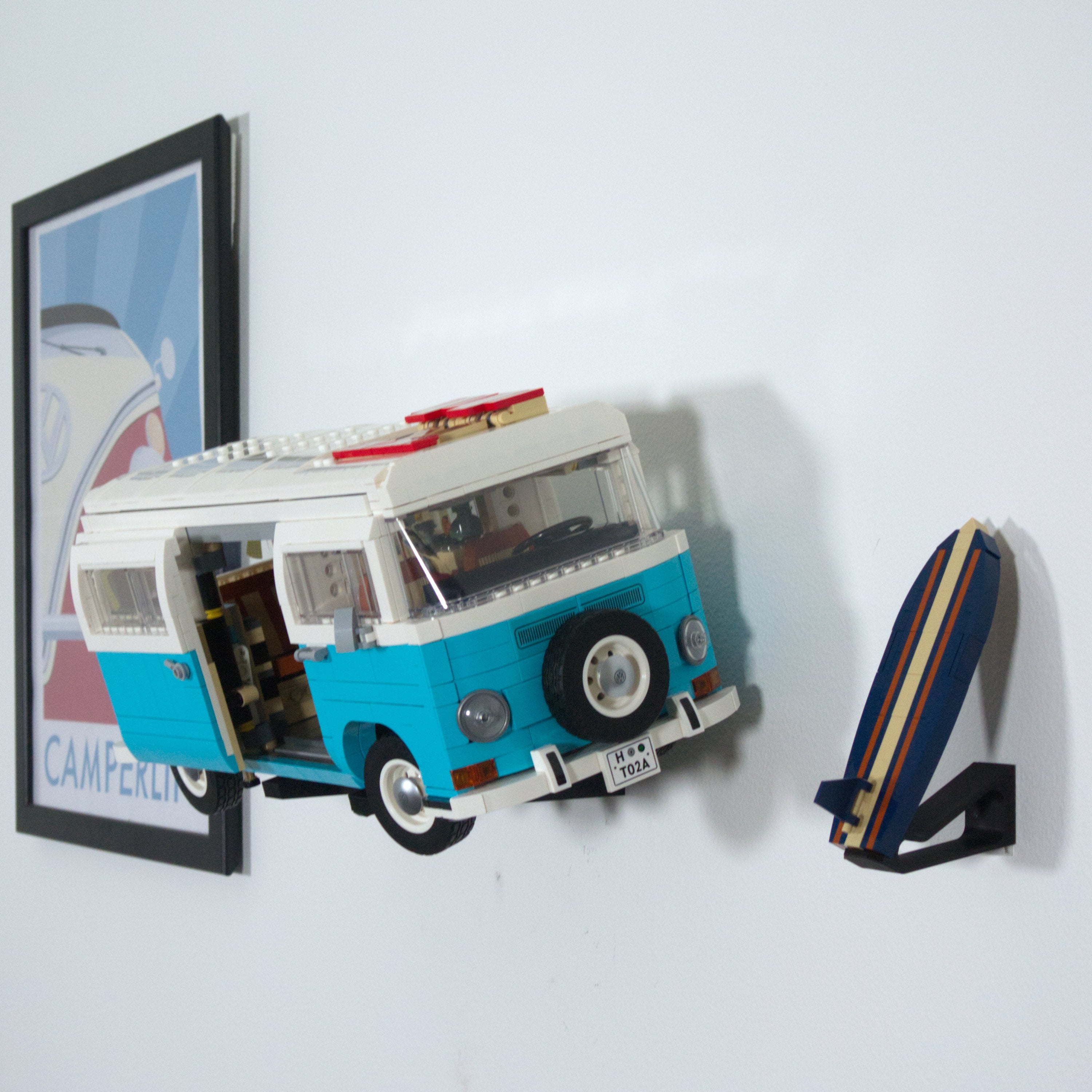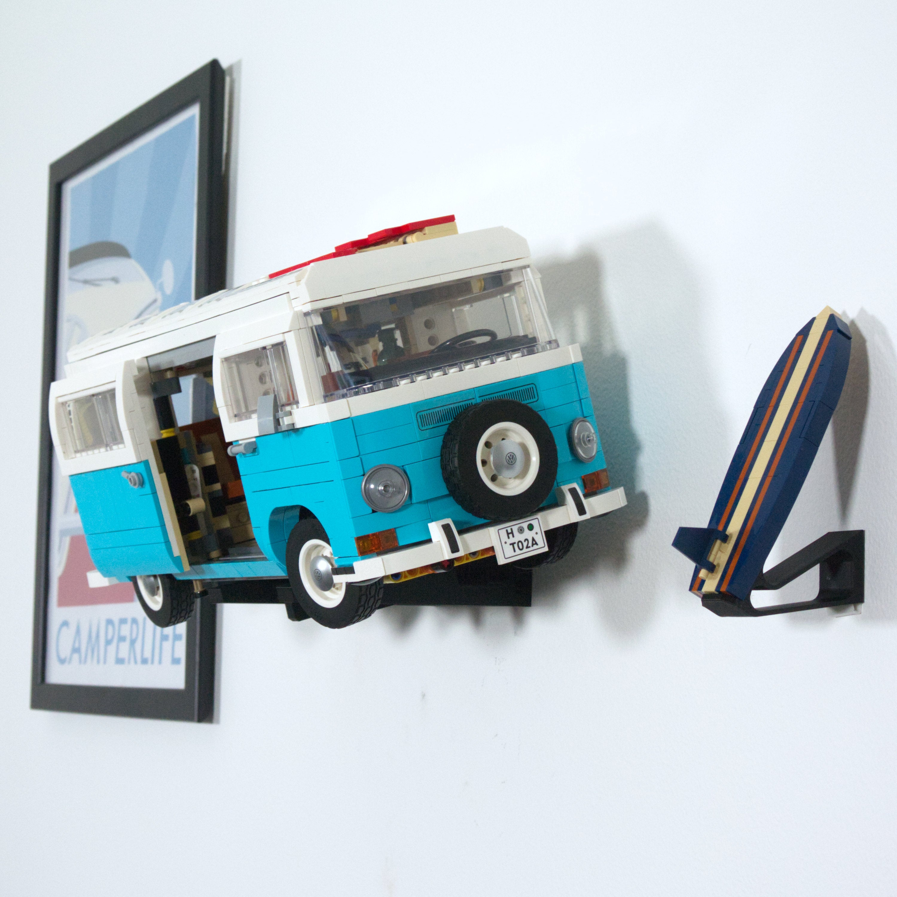 Deze wandbeugel laat u uw LEGO VW Camper Van horizontaal aan de muur tentoonstellen. Hij is compatibel met zowel de T1- als de T2-modellen en maakt eenvoudige demontage van de auto mogelijk. Er wordt een aparte beugel voor de surfboard meegeleverd en de hoofdbeugel zelf wordt eenvoudig met één schroef gemonteerd.