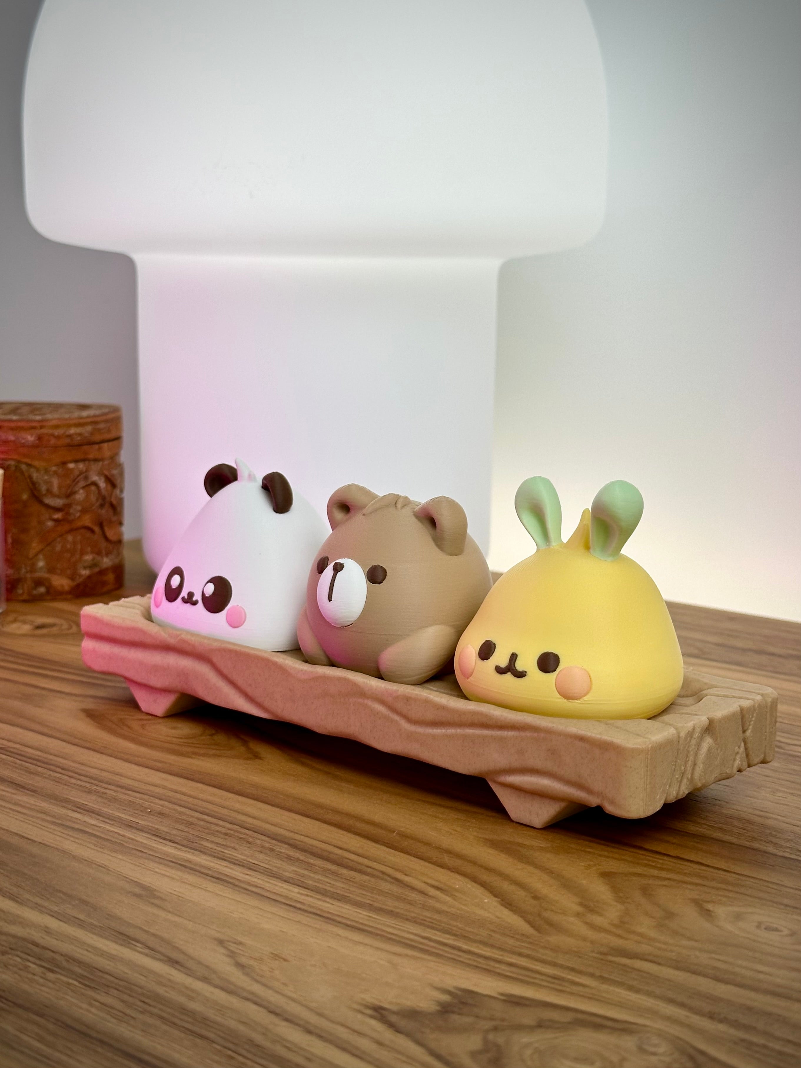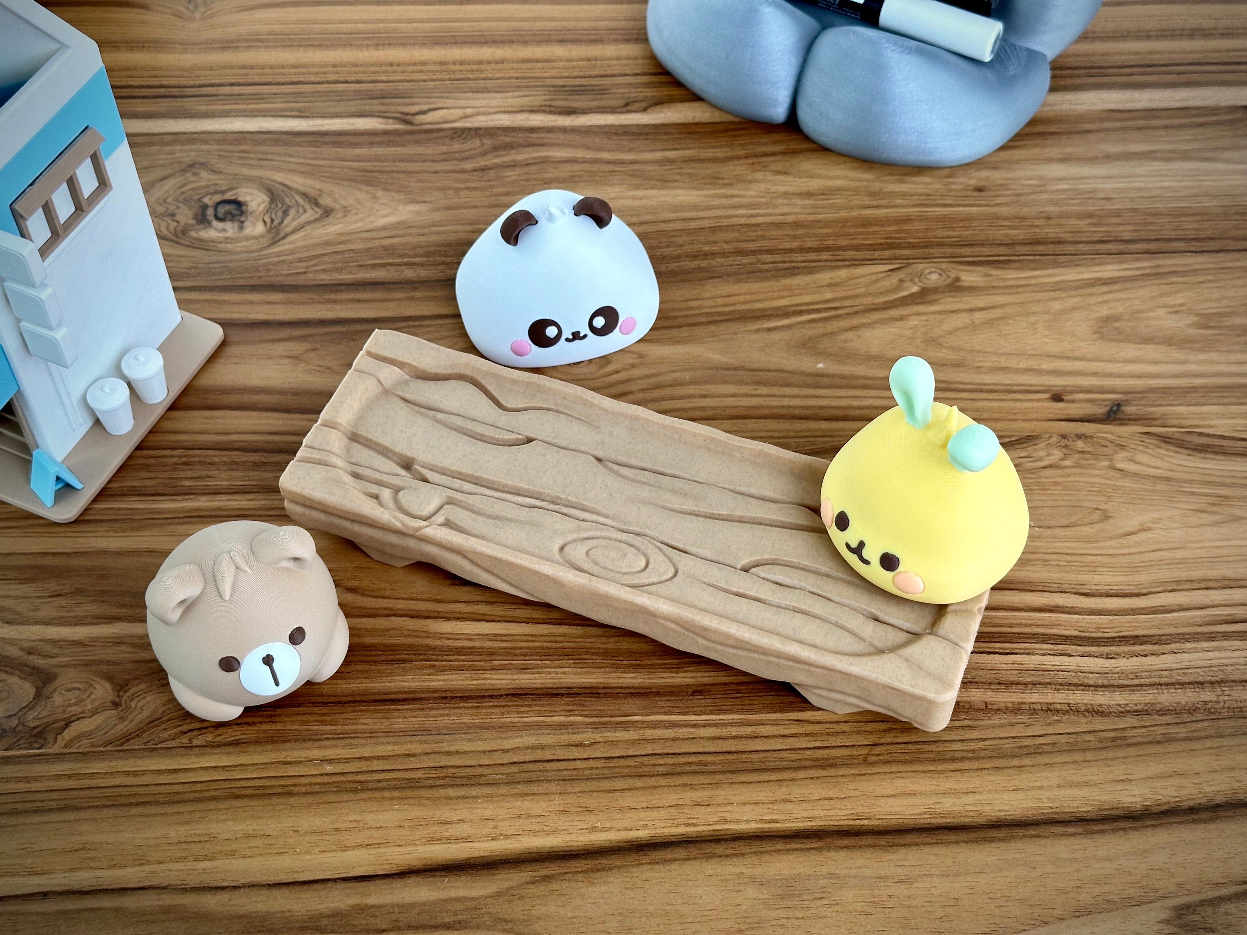 Schattige Kawaii Dierlijke Baoers op Houten Blok