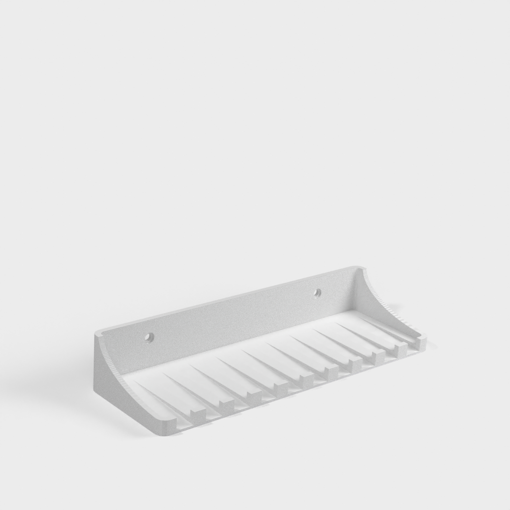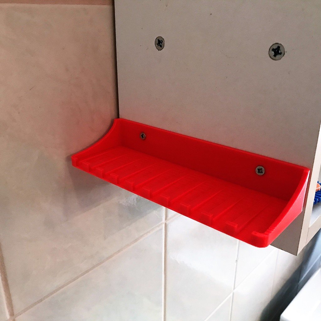 Een aan de muur gemonteerde badkamerplank die geprint en met schroeven kan worden gemonteerd. De plank is ideaal voor het opbergen van kleine toiletartikelen en voegt de nodige extra opbergruimte toe aan elke badkamer. Door zijn compacte formaat is hij perfect voor kleine badkamers.