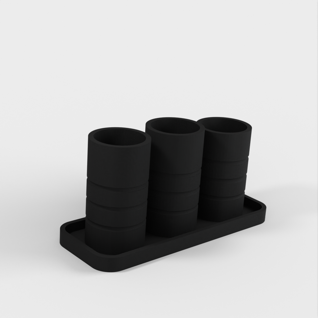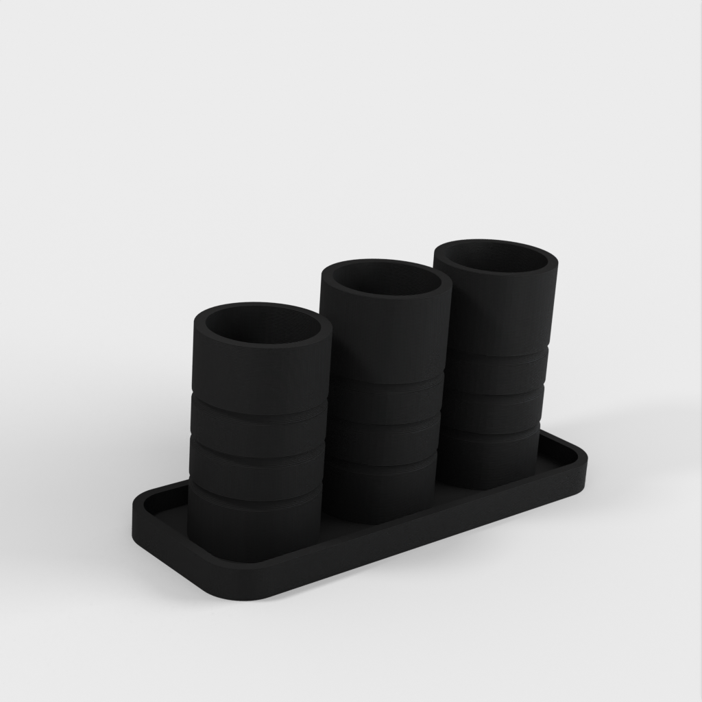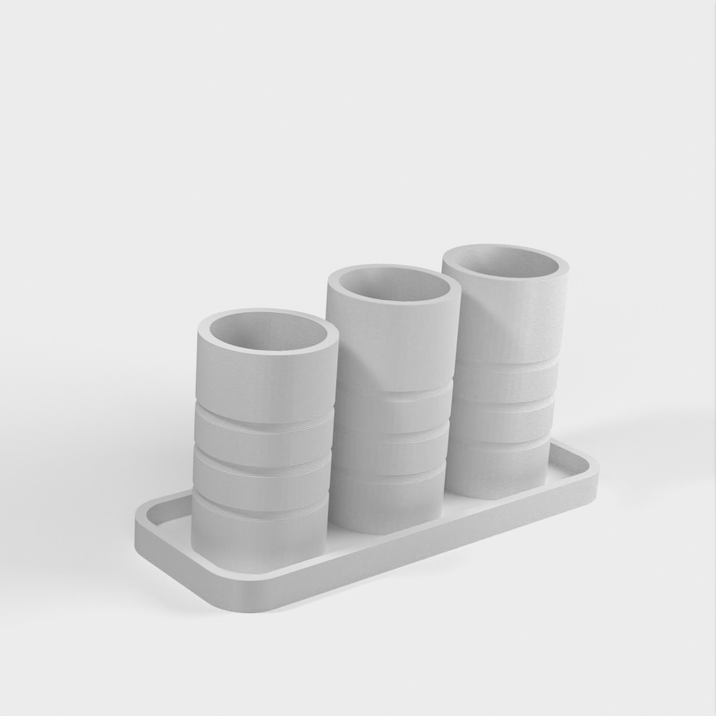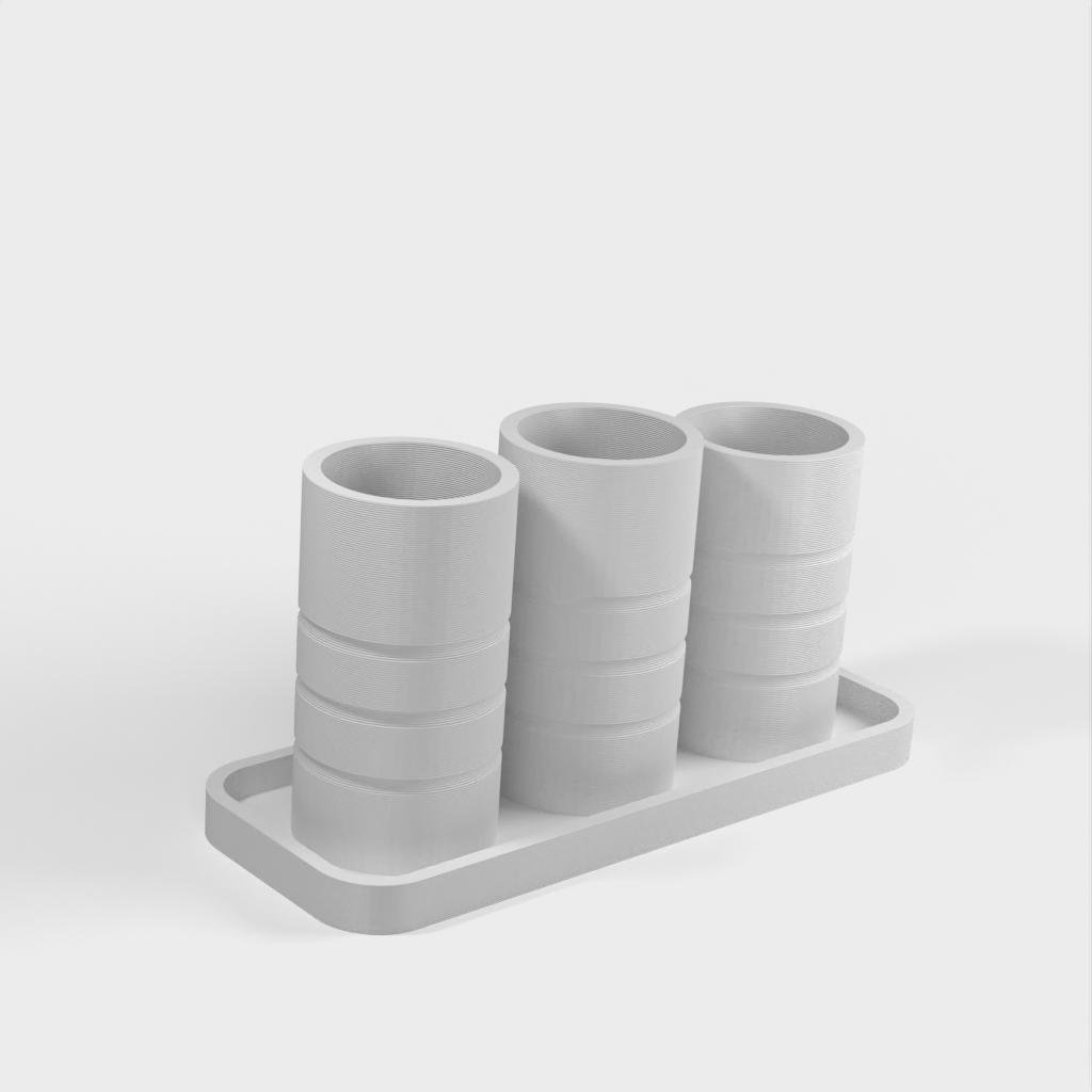 Een eenvoudige badkamer organizer met twee houders voor tandenborstels en een derde voor q-tips of andere spullen. Helpt je badkamer netjes en georganiseerd te houden.