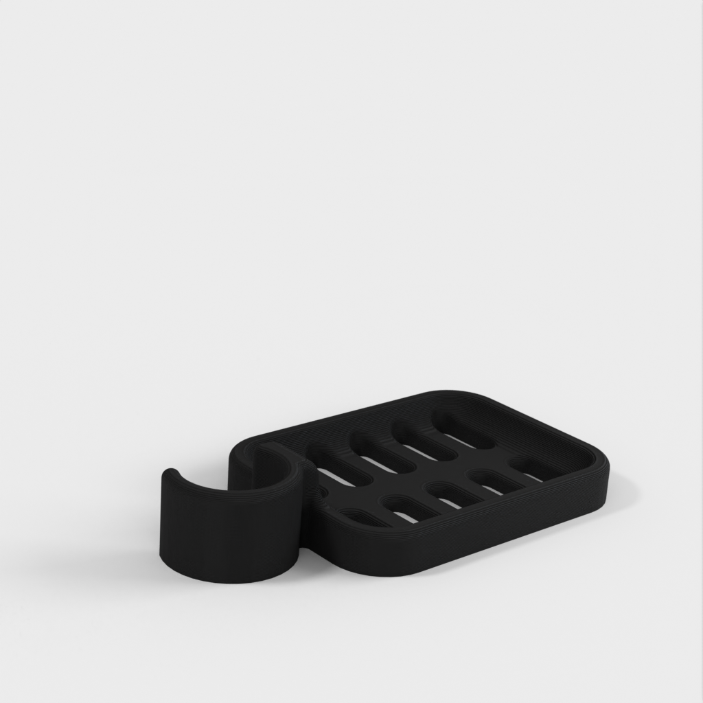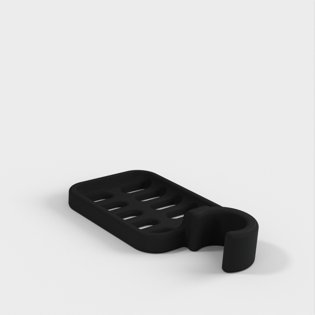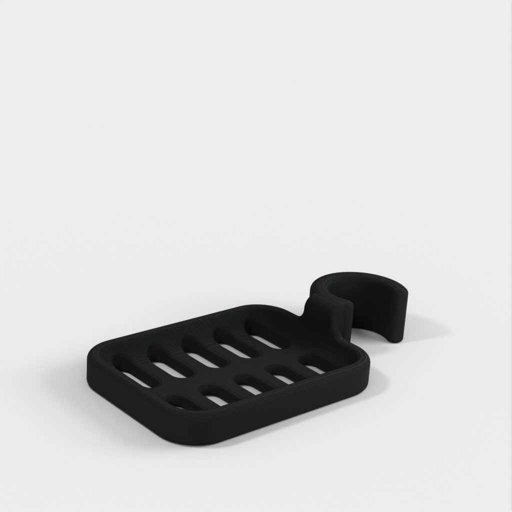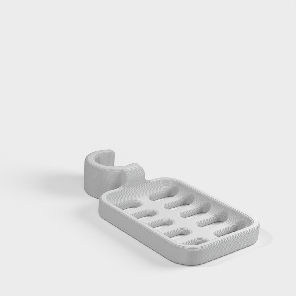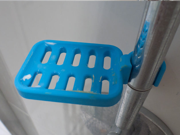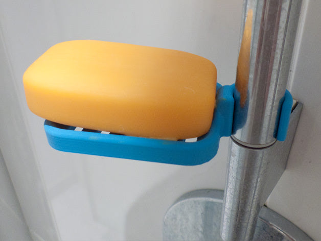 Douchezeephouder ontworpen om op de douchestang te klemmen. De zeephouder is speciaal ontworpen om te passen op een ronde stang met een diameter van 21,9 mm. Houd er rekening mee dat de zeephouder iets kleiner van formaat is. Het wordt afgeraden om PLA te gebruiken als dat mogelijk is, omdat de haak na verloop van tijd kapot dreigt te gaan, vooral in een doucheomgeving. ABS plastic wordt aanbevolen als een duurzamer materiaal voor dit product.
