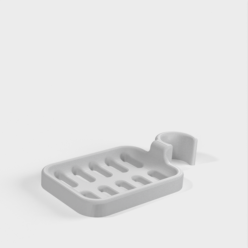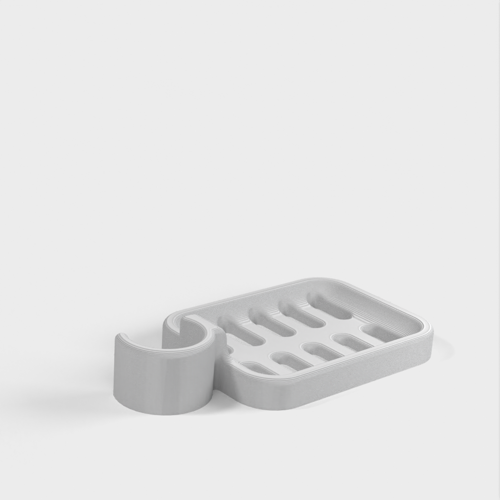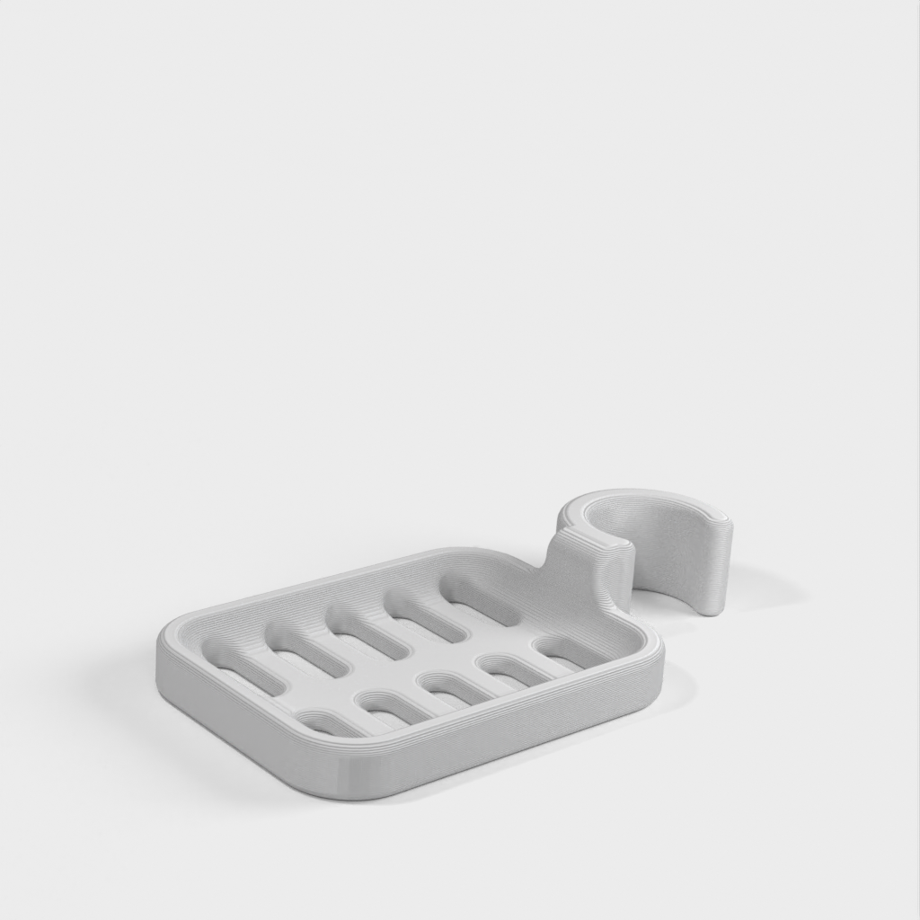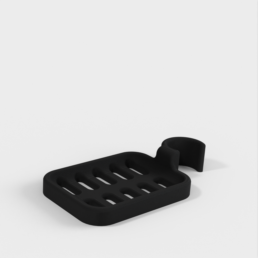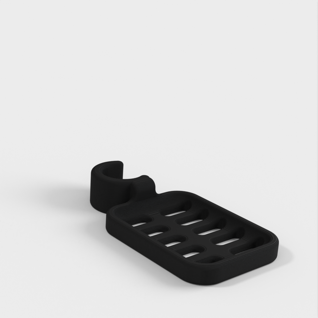 Douchezeephouder ontworpen om op de douchestang te klemmen. De zeephouder is speciaal ontworpen om te passen op een ronde stang met een diameter van 21,9 mm. Houd er rekening mee dat de zeephouder iets kleiner van formaat is. Het wordt afgeraden om PLA te gebruiken als dat mogelijk is, omdat de haak na verloop van tijd kapot dreigt te gaan, vooral in een doucheomgeving. ABS plastic wordt aanbevolen als een duurzamer materiaal voor dit product.