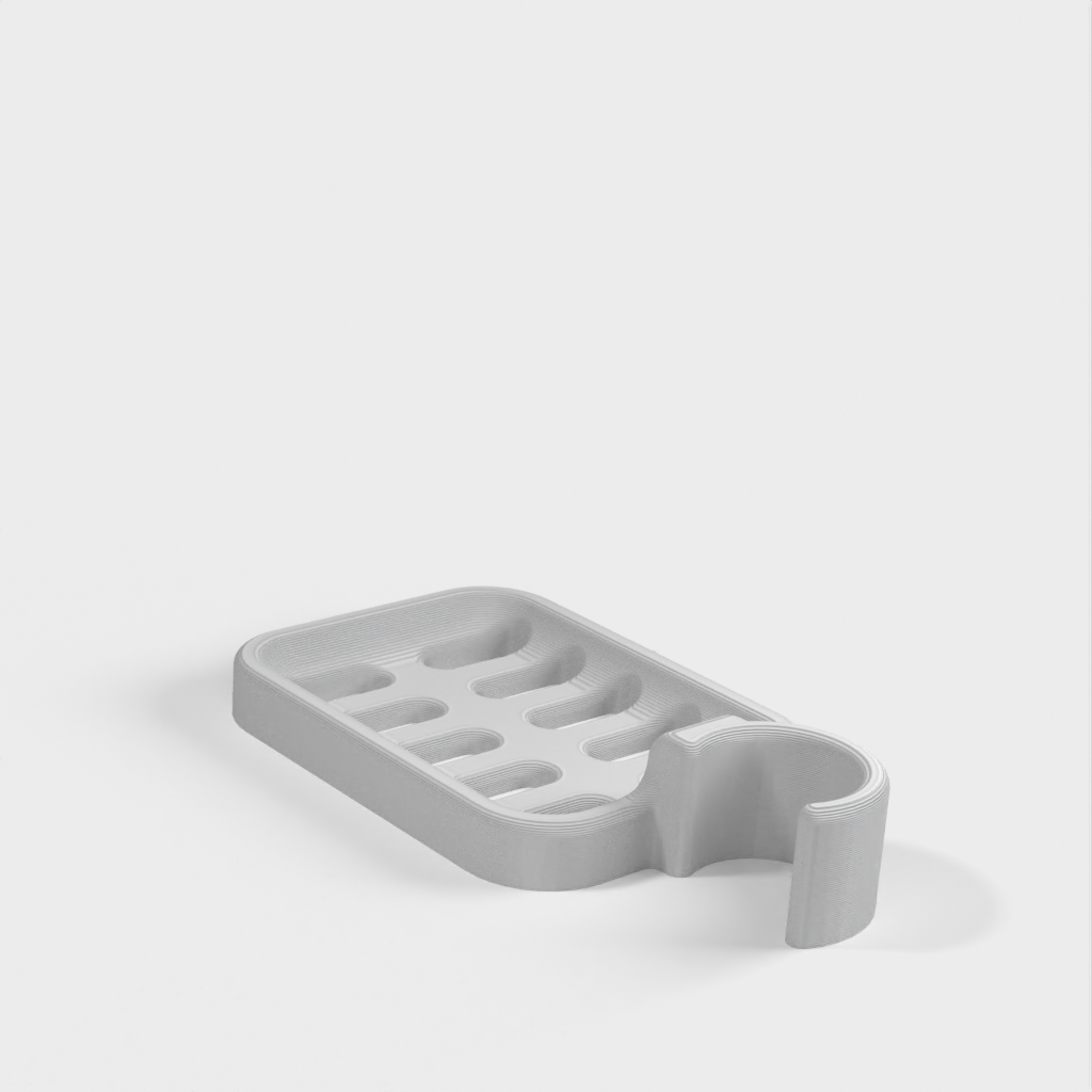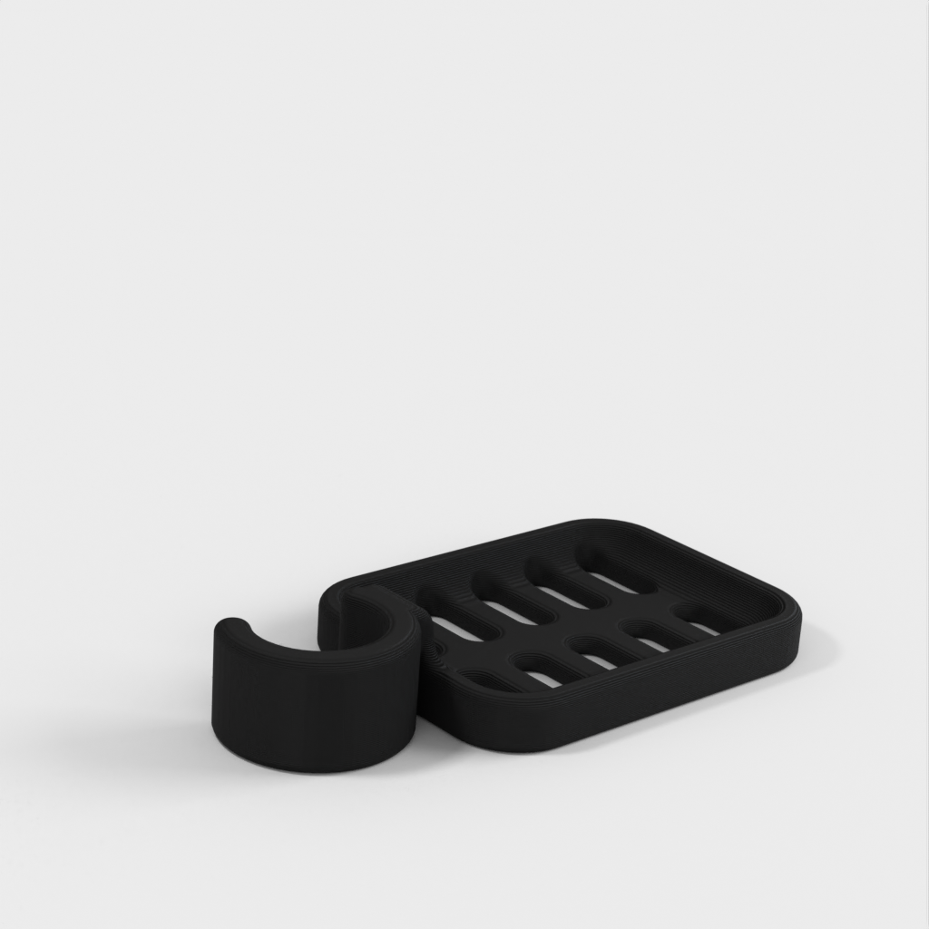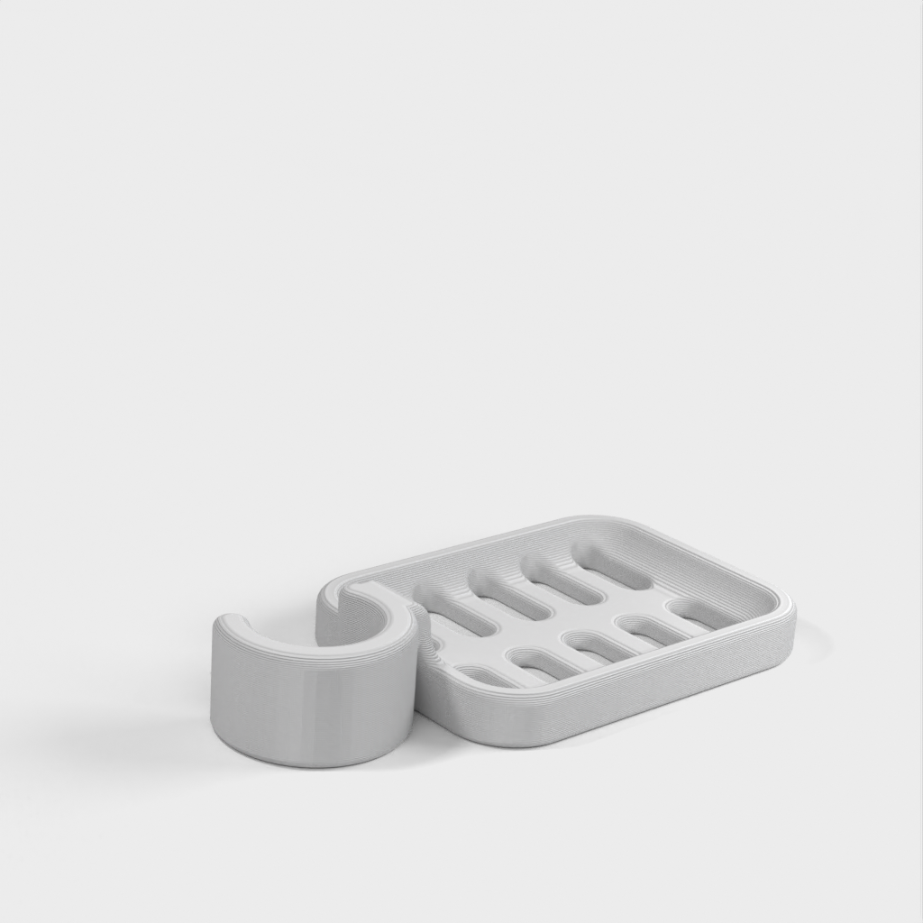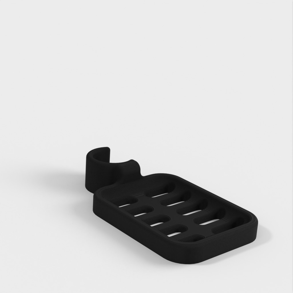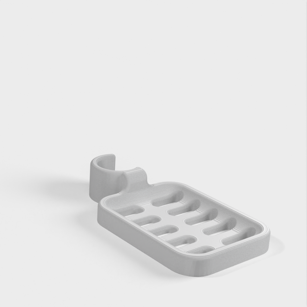 Douchezeephouder ontworpen om op de douchestang te klemmen. De zeephouder is speciaal ontworpen om te passen op een ronde stang met een diameter van 21,9 mm. Houd er rekening mee dat de zeephouder iets kleiner van formaat is. Het wordt afgeraden om PLA te gebruiken als dat mogelijk is, omdat de haak na verloop van tijd kapot dreigt te gaan, vooral in een doucheomgeving. ABS plastic wordt aanbevolen als een duurzamer materiaal voor dit product.