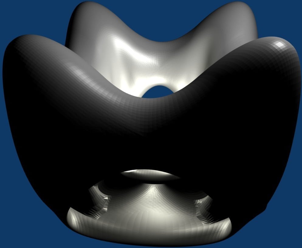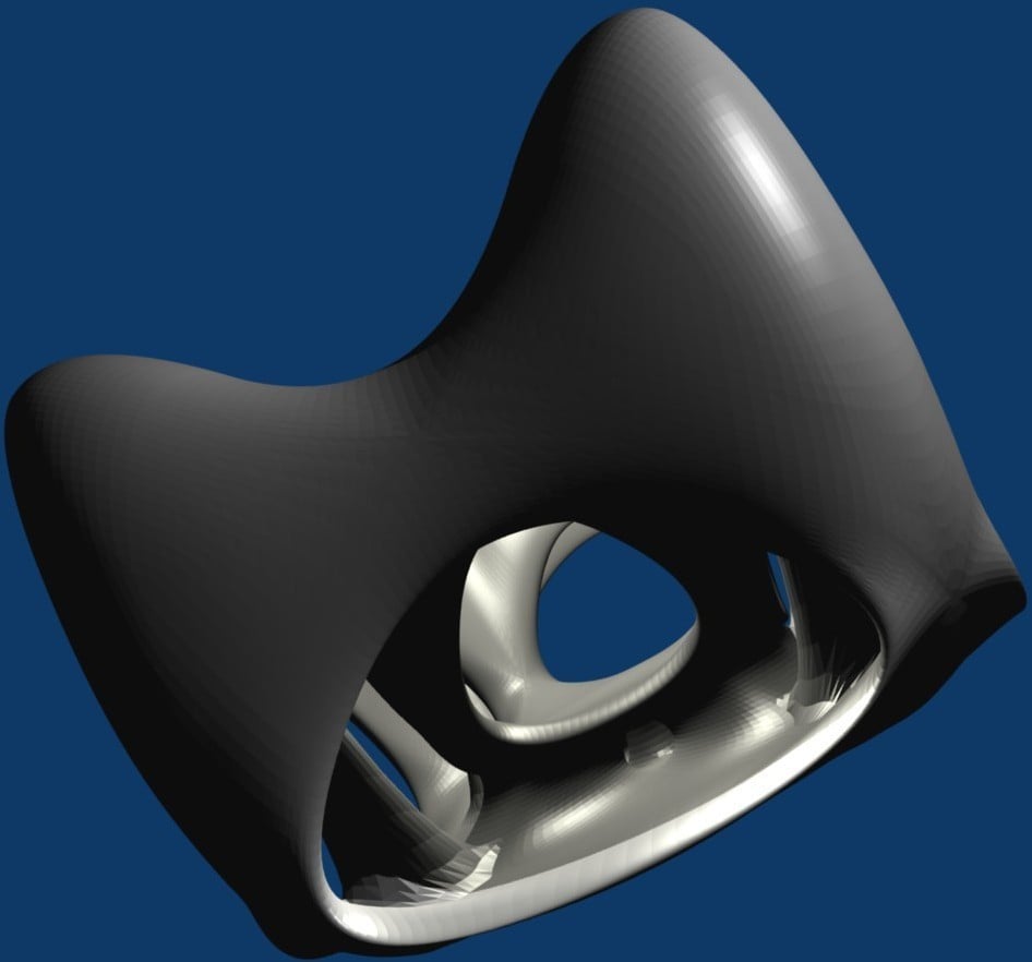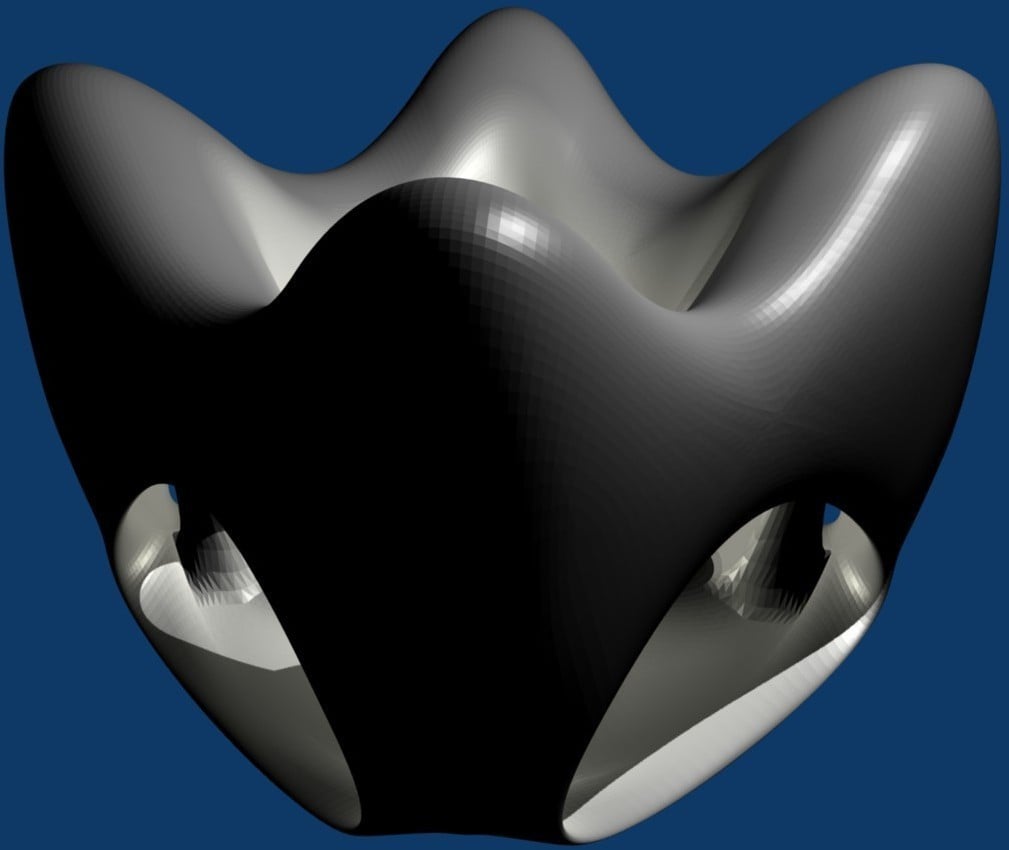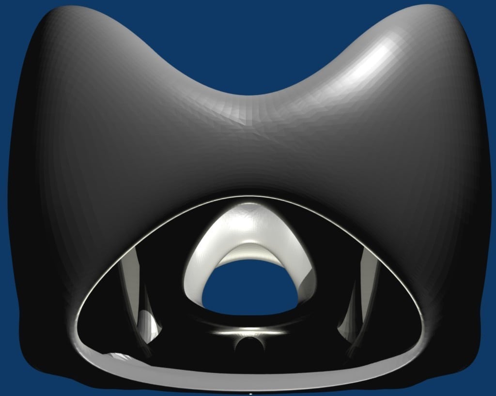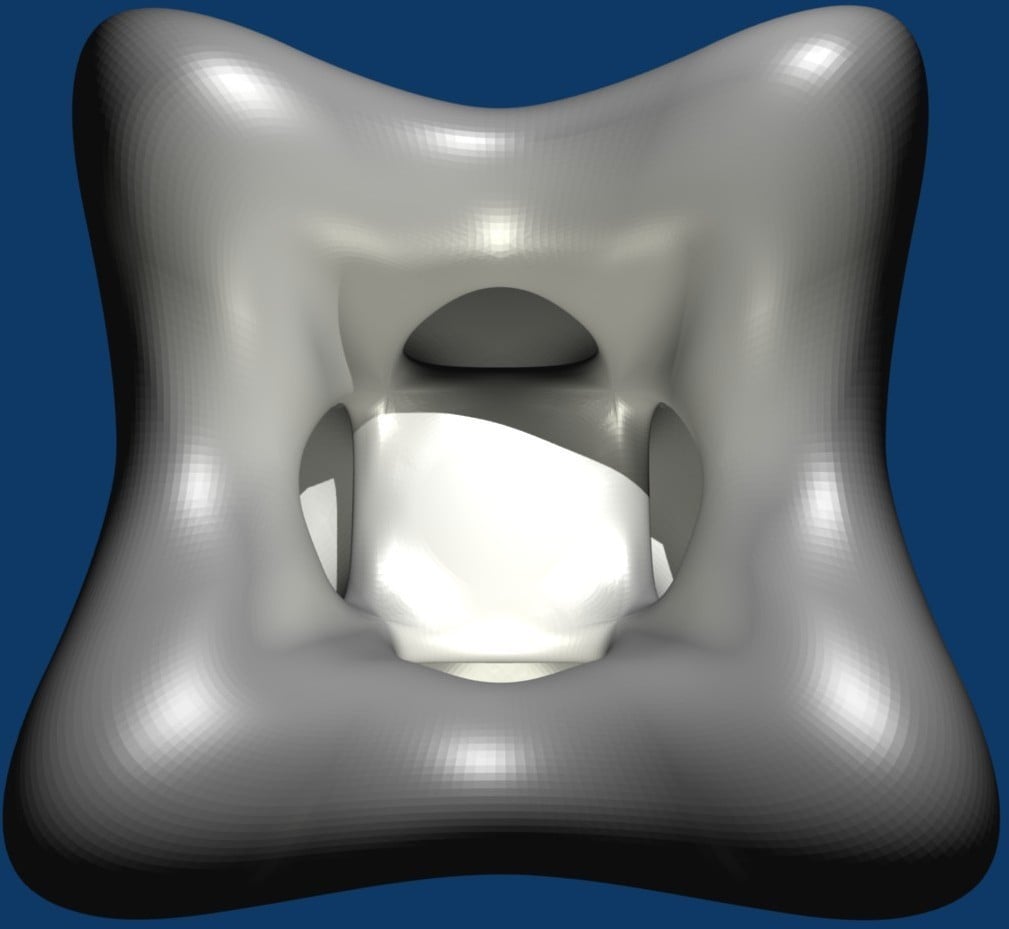 De buitenkant is glad, met een paar zacht afgeronde gaten erin, maar hij wordt overeind gehouden door pilaren die half verborgen zijn, zoals de vloer van de put in het midden.