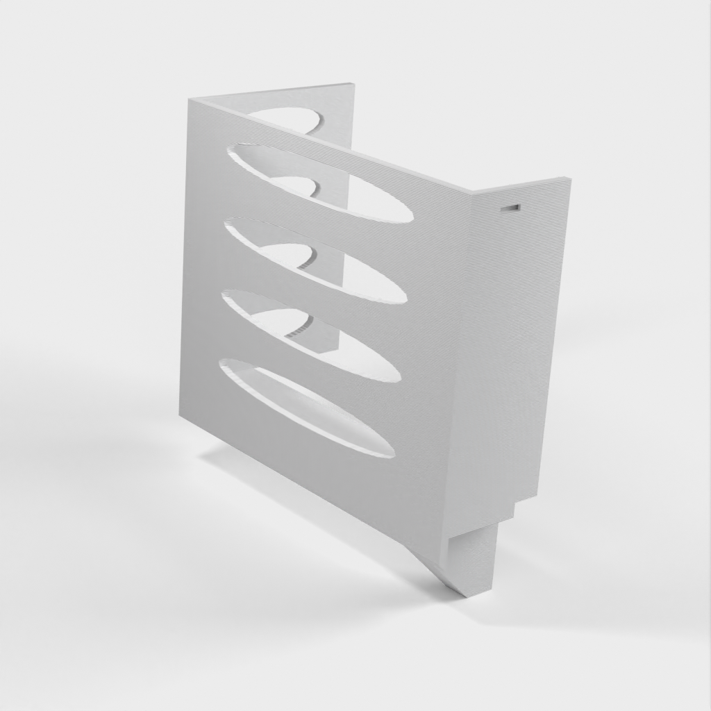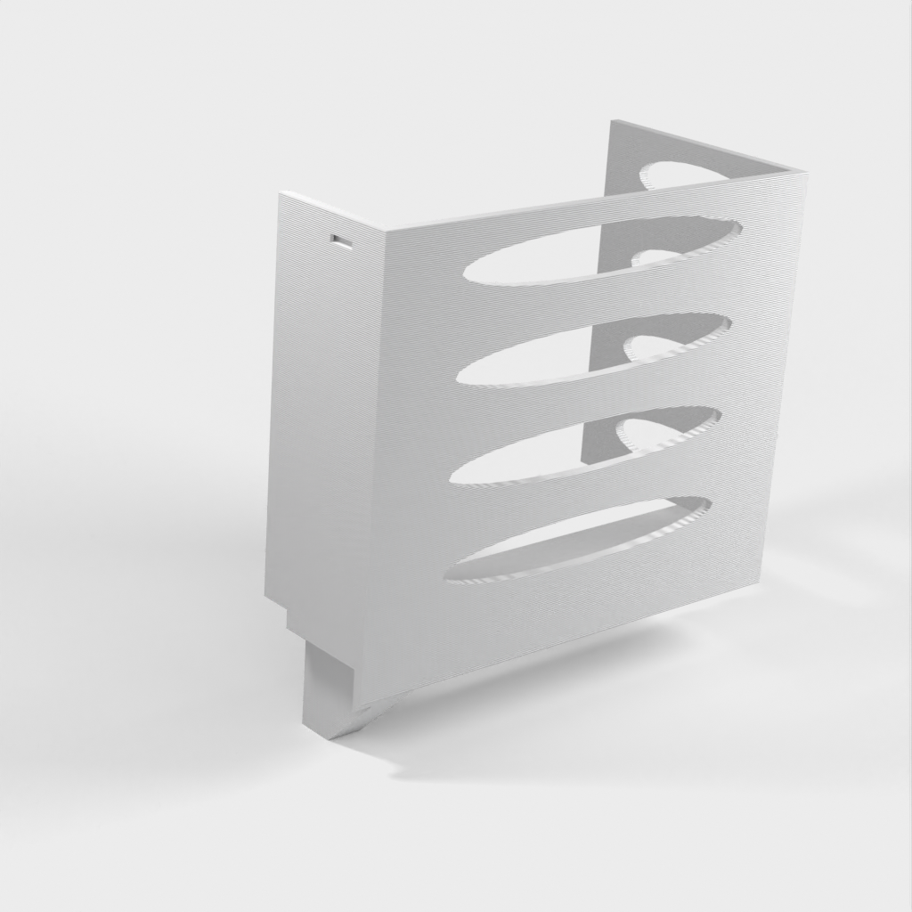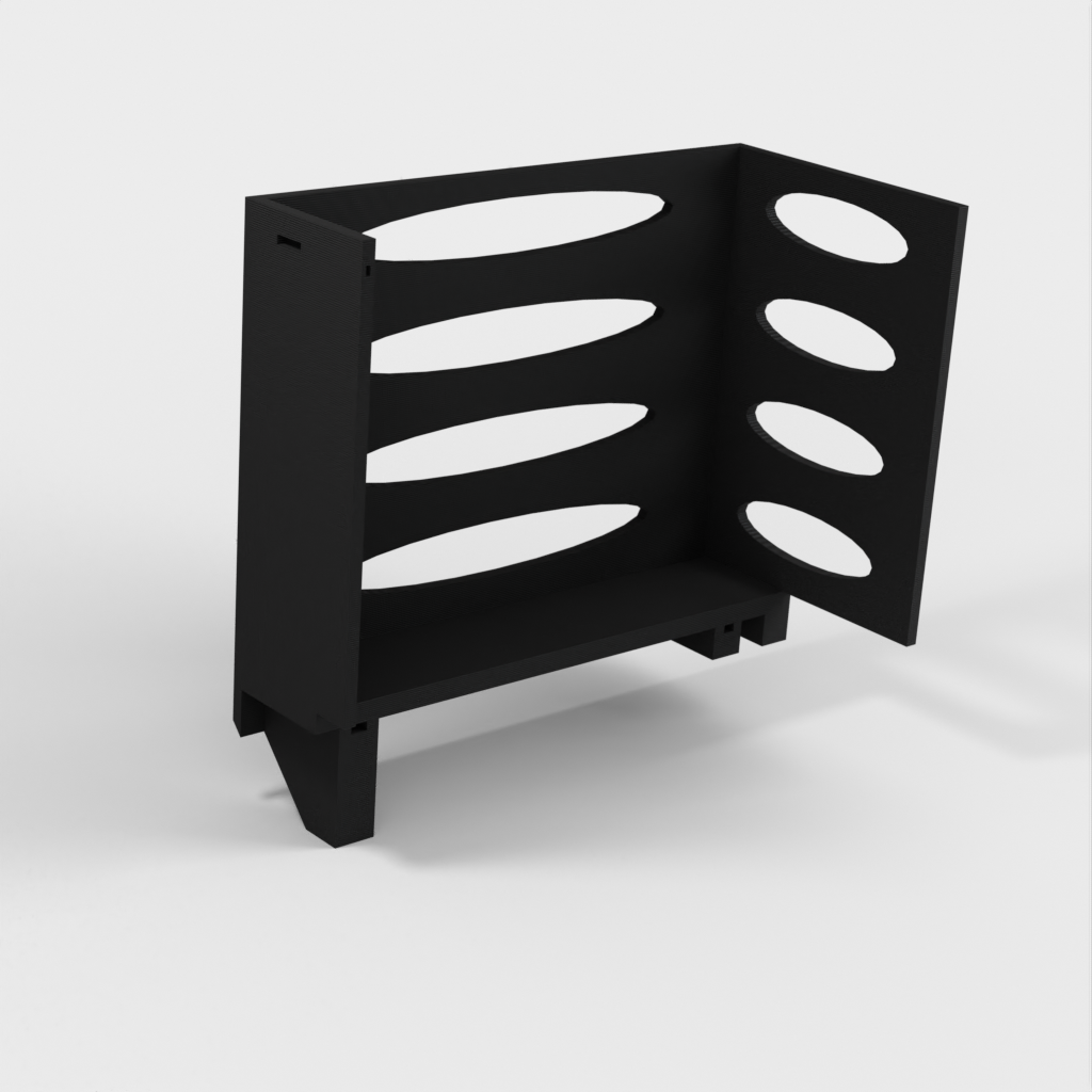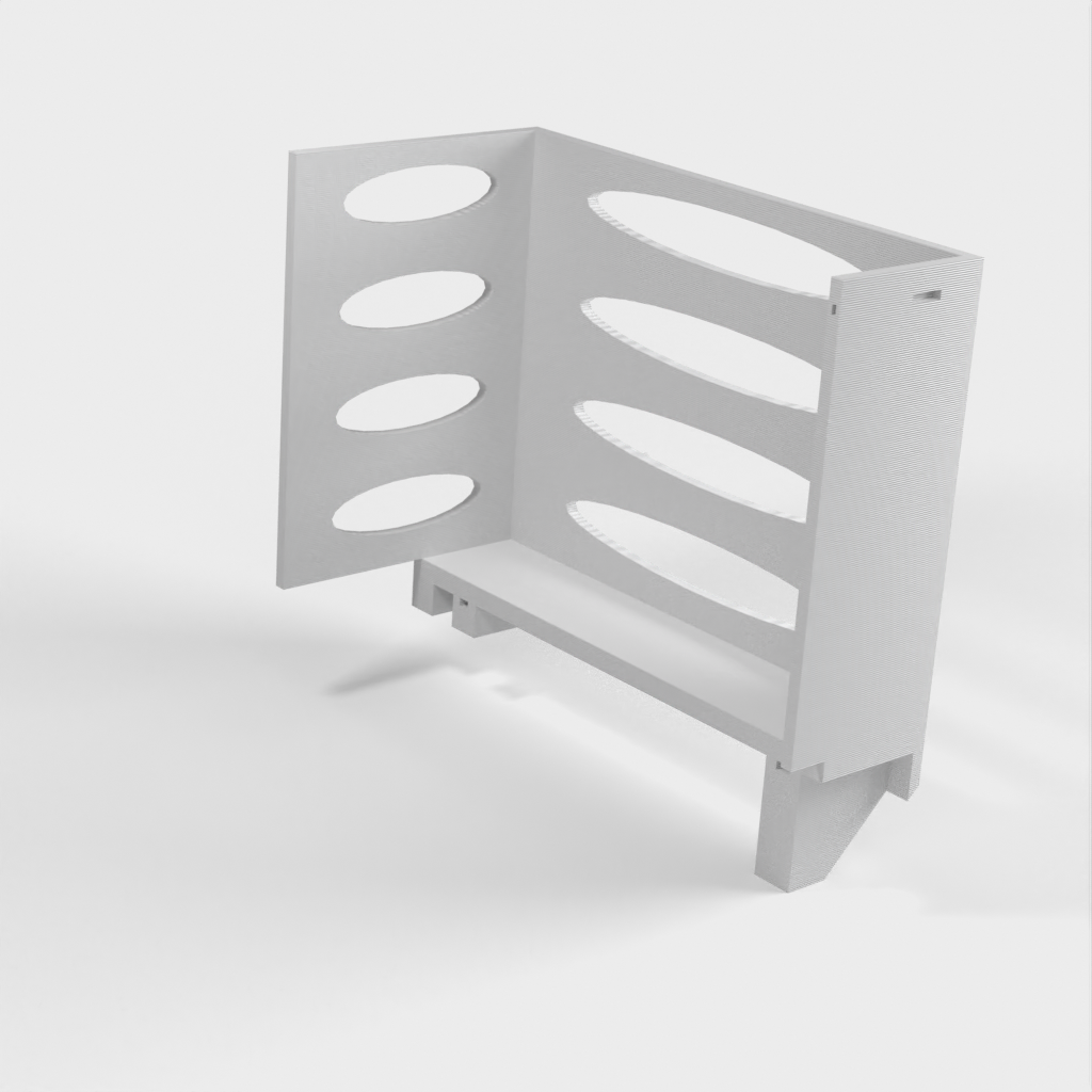 Deze papieren handdoekdispenser kan op een Ikea Grundtal plankbeugel worden gemonteerd. Verwijder gewoon de lade en plaats de afgedrukte items op de consoles. Het product heeft kleinere openingen aan de onderkant die gebruikt kunnen worden om de items met een dunne draad aan elkaar vast te maken. Ook aan de achterkant zitten openingen voor montage. De binnenafmetingen zijn 130x 254 mm.
