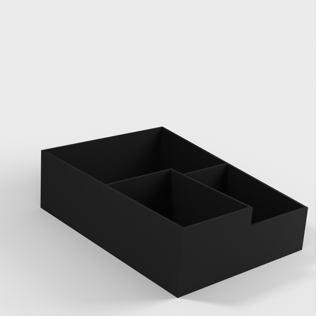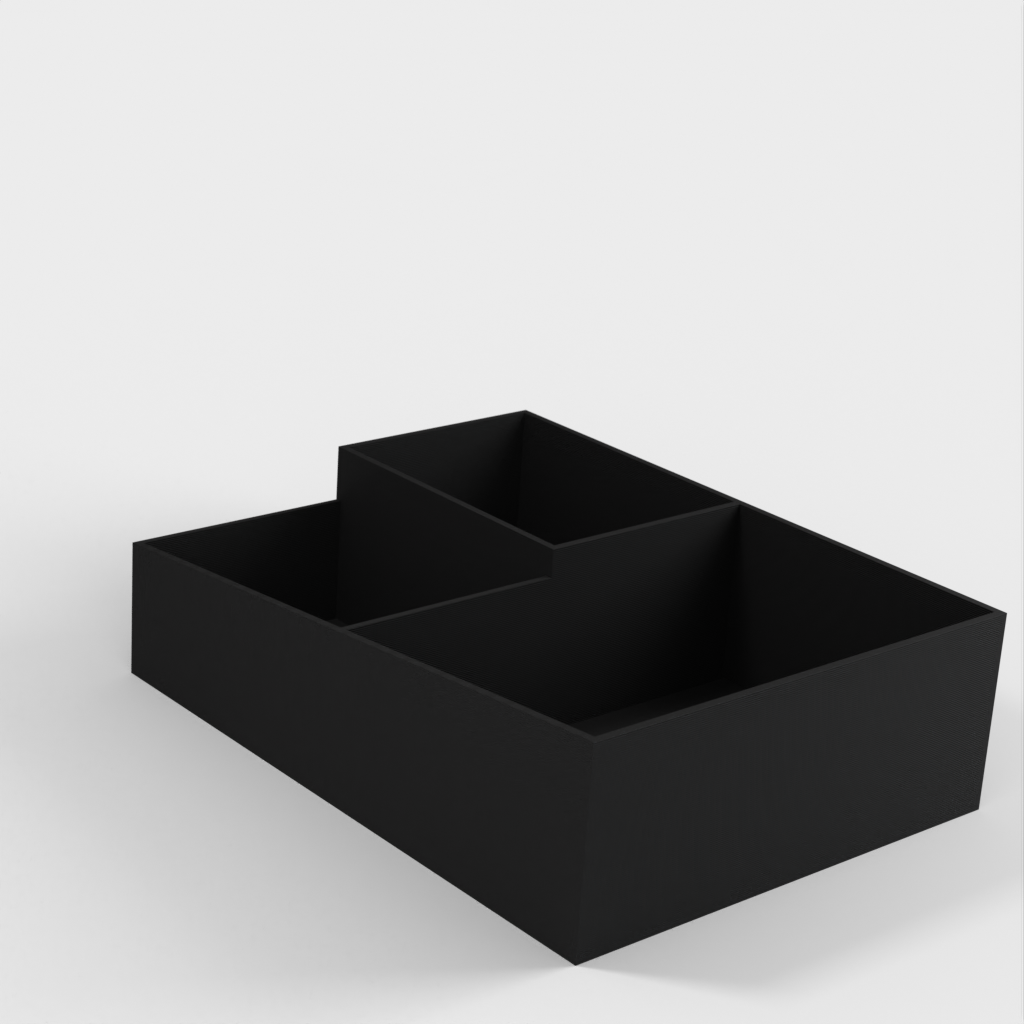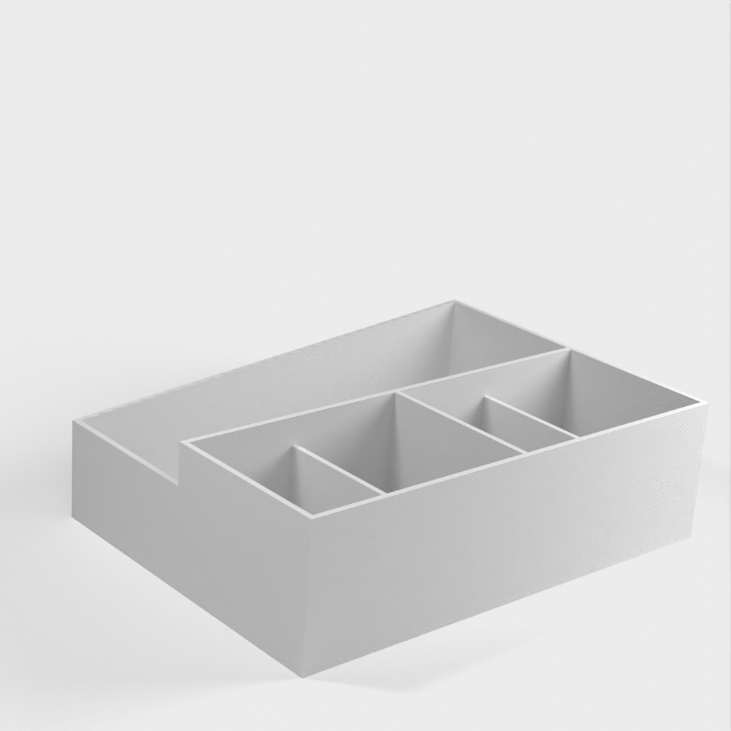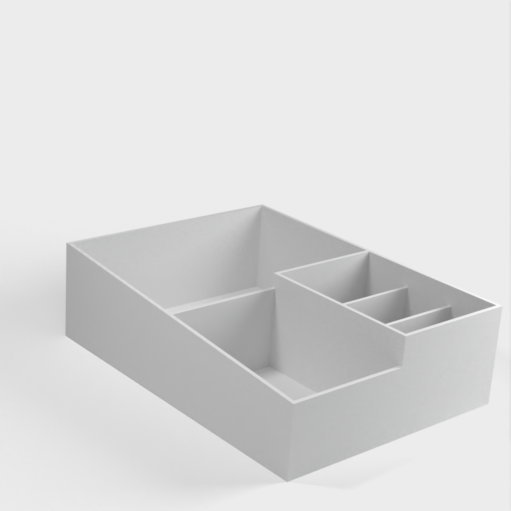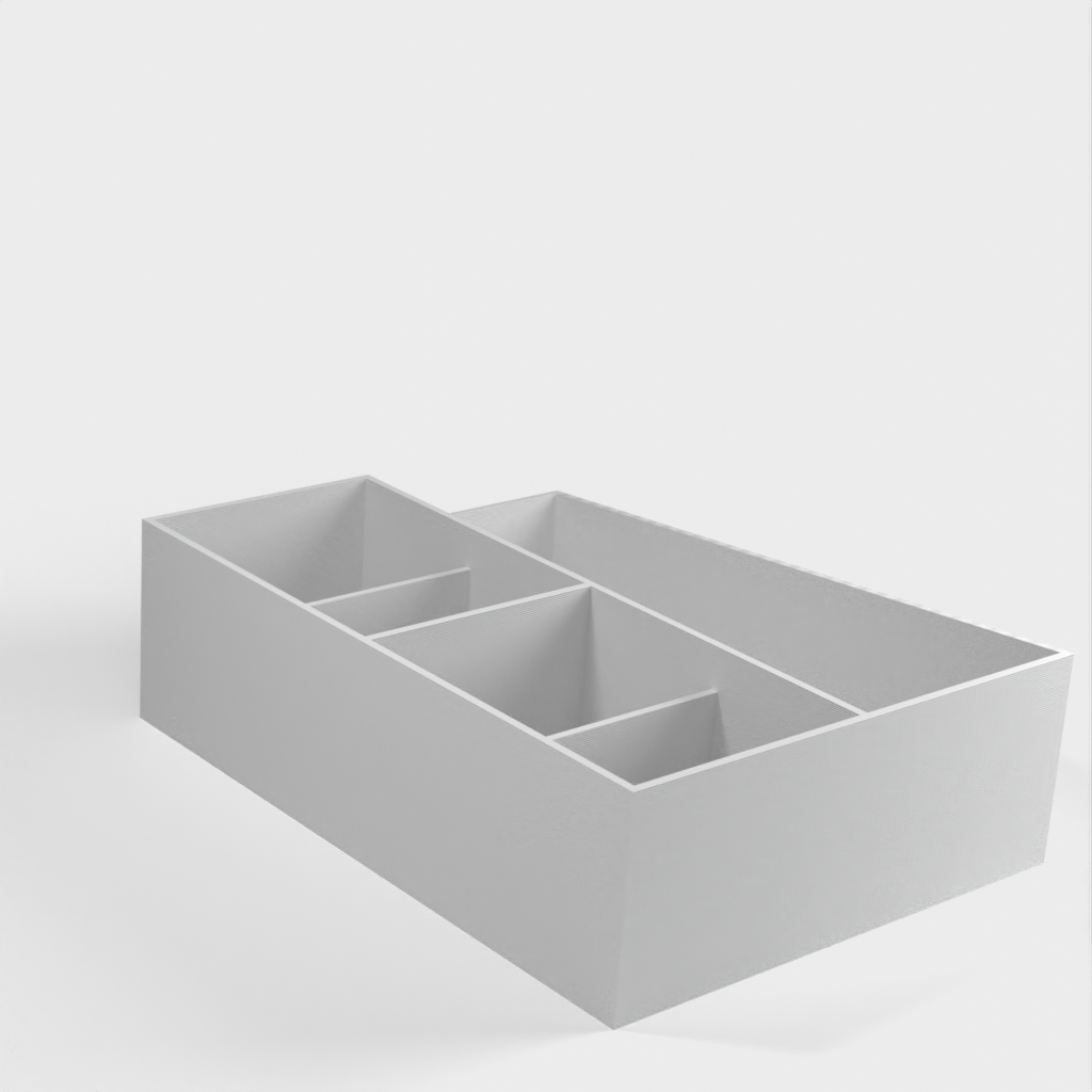 Ze zijn allemaal zo gemaakt dat ze in het 1/4 deel van het Ikea 'MALM'-nachtkastje passen, dus print er gerust 1, 2, 3 of 4 van. bed lade. Persoonlijk heb ik er alleen links en rechts één geprint voor in de voorkant van de la, en één voor achterin, maar je kunt ze naar wens richten.