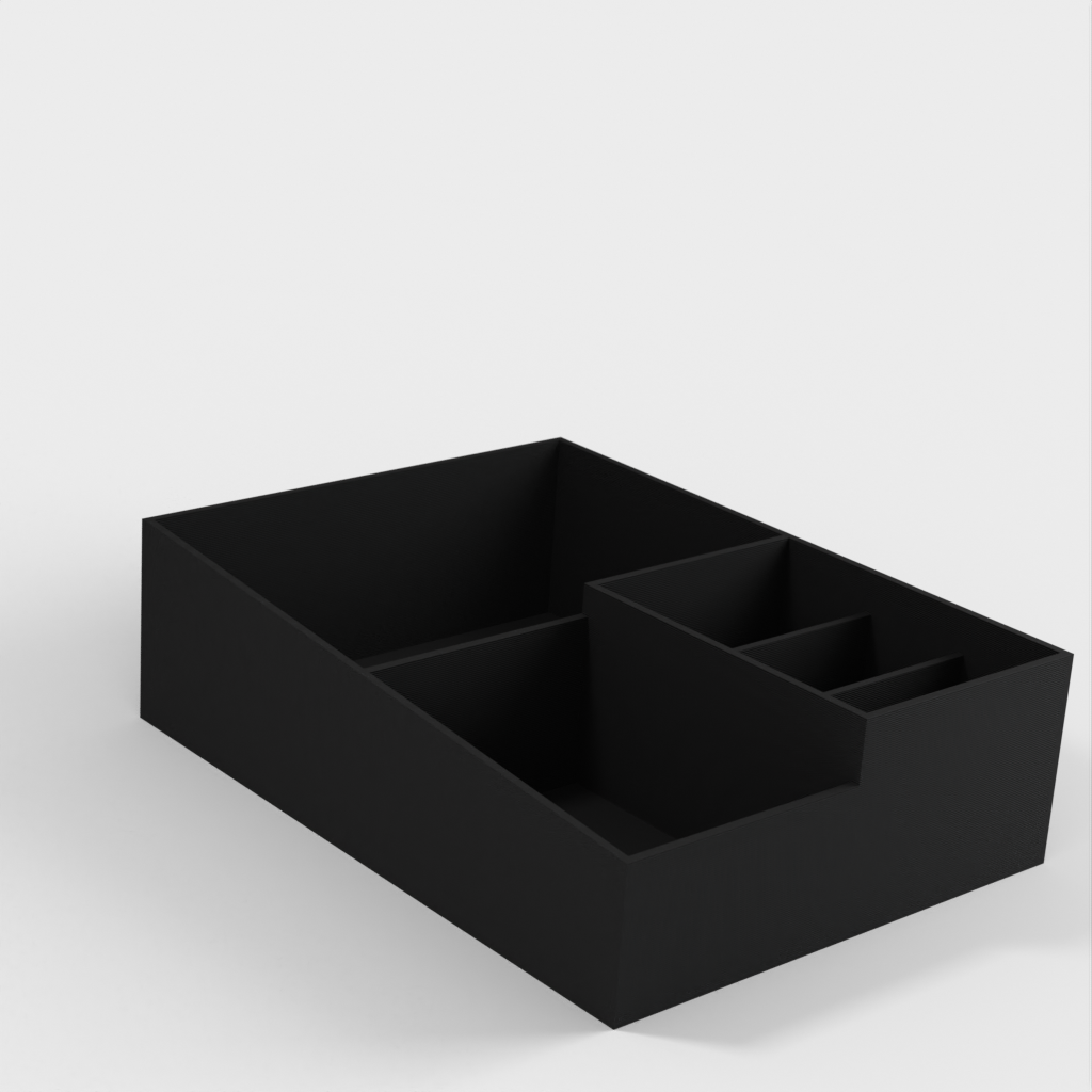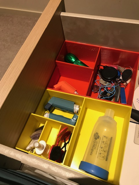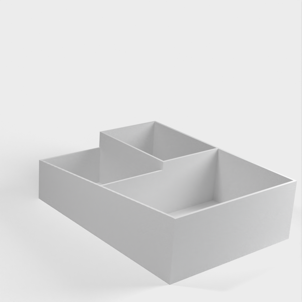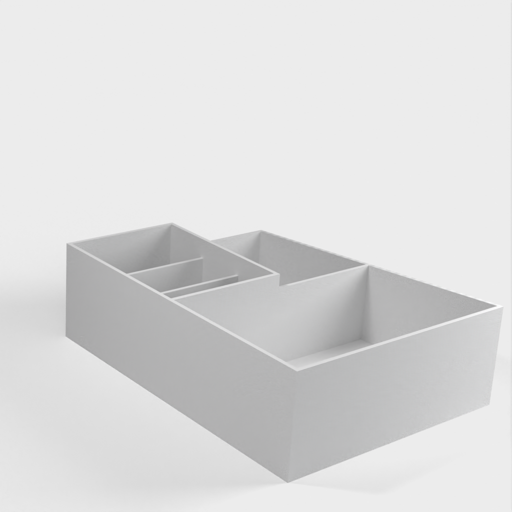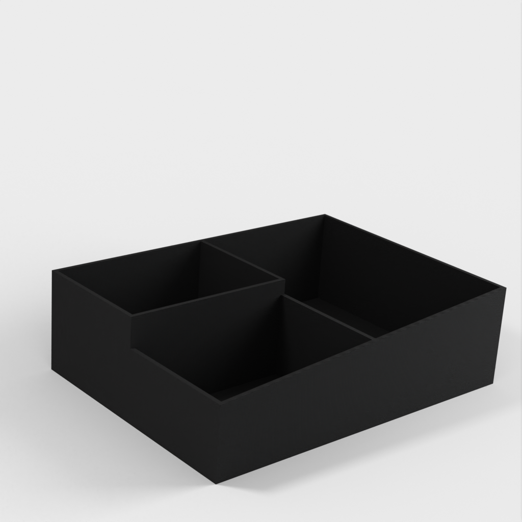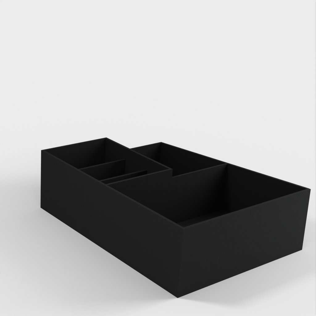 Ze zijn allemaal zo gemaakt dat ze in het 1/4 deel van het Ikea 'MALM'-nachtkastje passen, dus print er gerust 1, 2, 3 of 4 van. bed lade. Persoonlijk heb ik er alleen links en rechts één geprint voor in de voorkant van de la, en één voor achterin, maar je kunt ze naar wens richten.