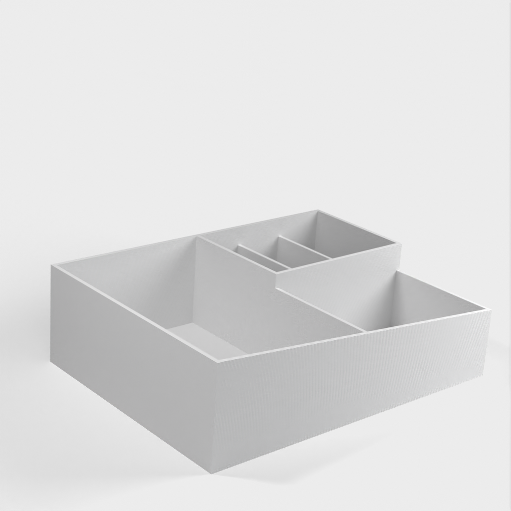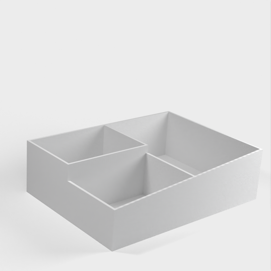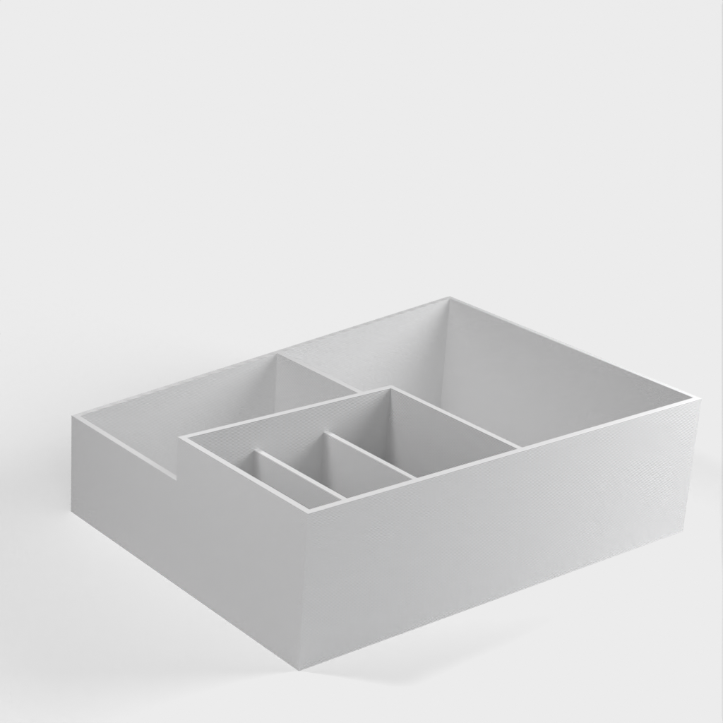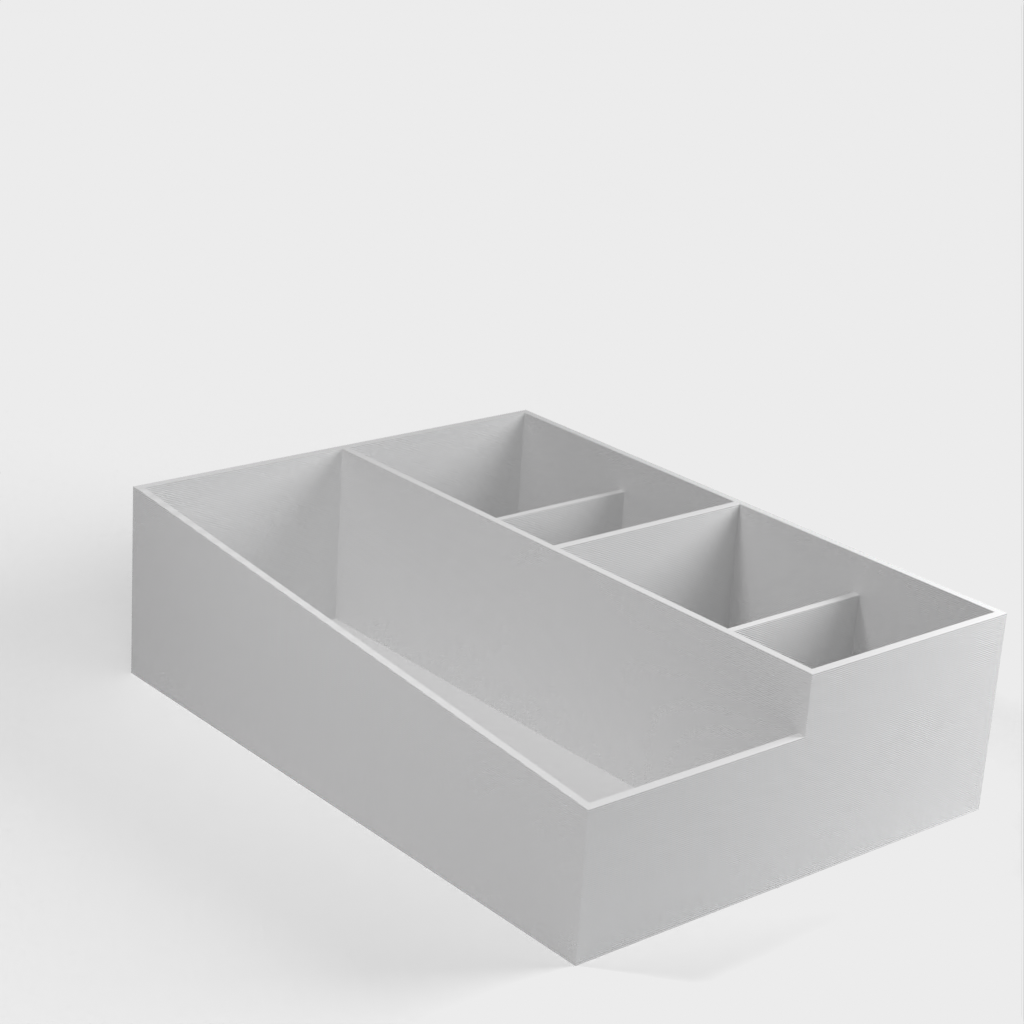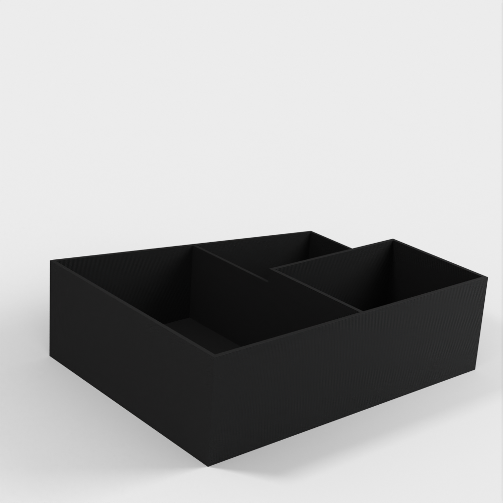 Ze zijn allemaal zo gemaakt dat ze in het 1/4 deel van het Ikea 'MALM'-nachtkastje passen, dus print er gerust 1, 2, 3 of 4 van. bed lade. Persoonlijk heb ik er alleen links en rechts één geprint voor in de voorkant van de la, en één voor achterin, maar je kunt ze naar wens richten.