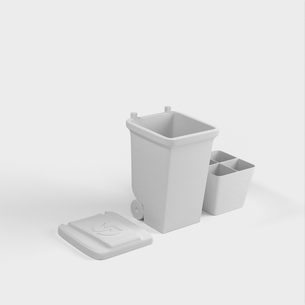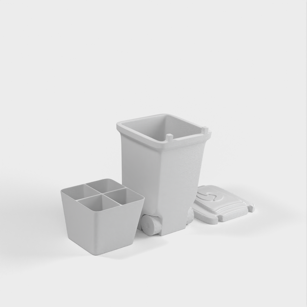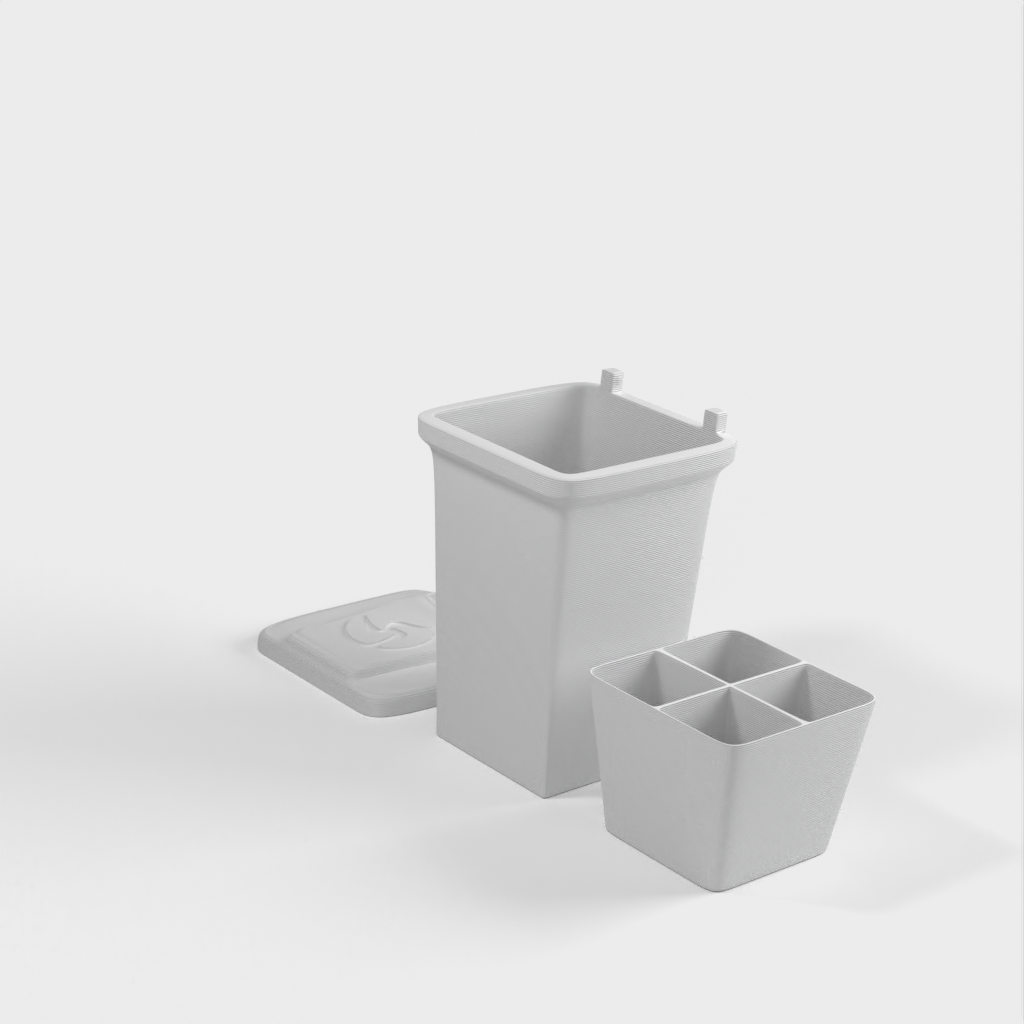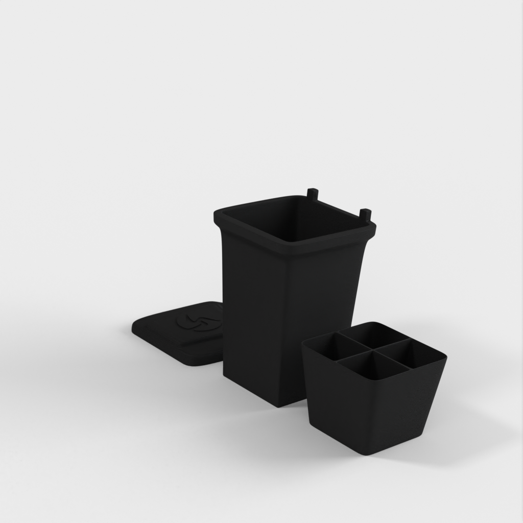 Een minibakje voor kleine voorwerpen zoals moeren en bouten. Print de onderdelen afzonderlijk voor verschillende materialen of allemaal tegelijk. Het deksel klikt vast en het inzetstuk is verwijderbaar. Ontworpen voor de lancering van ons nieuwe materiaal, Landfillament, dat is gemaakt van afval! Lees hier meer: https://www.youtube.com/watch?v=TSWXhDounRY