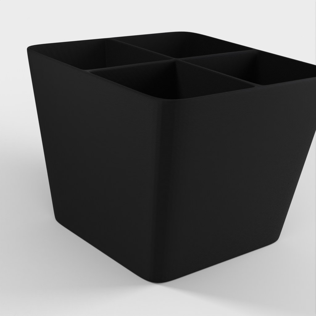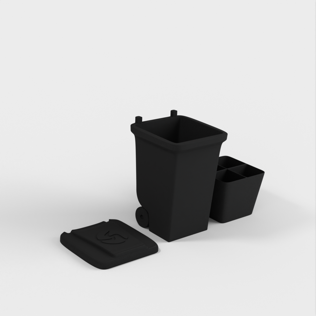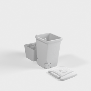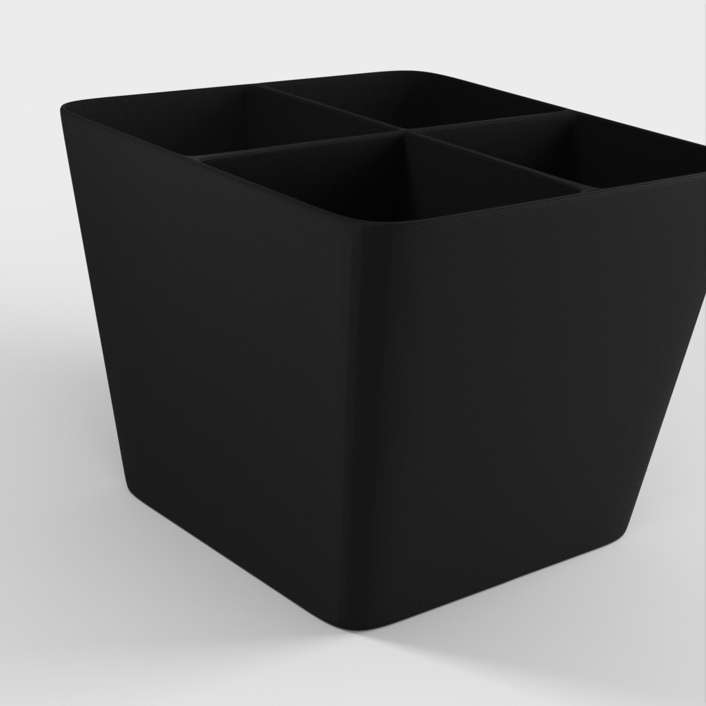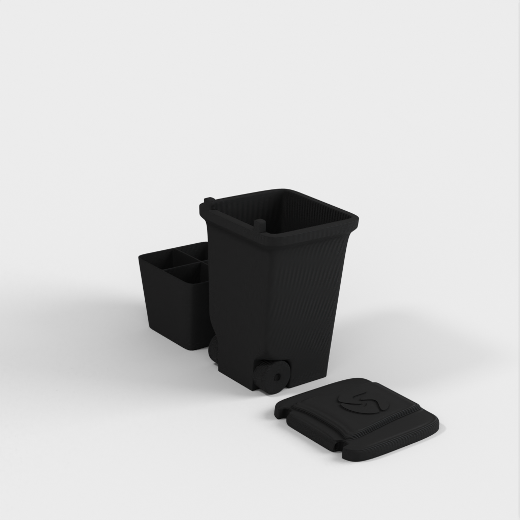 Een minibakje voor kleine voorwerpen zoals moeren en bouten. Print de onderdelen afzonderlijk voor verschillende materialen of allemaal tegelijk. Het deksel klikt vast en het inzetstuk is verwijderbaar. Ontworpen voor de lancering van ons nieuwe materiaal, Landfillament, dat is gemaakt van afval! Lees hier meer: https://www.youtube.com/watch?v=TSWXhDounRY