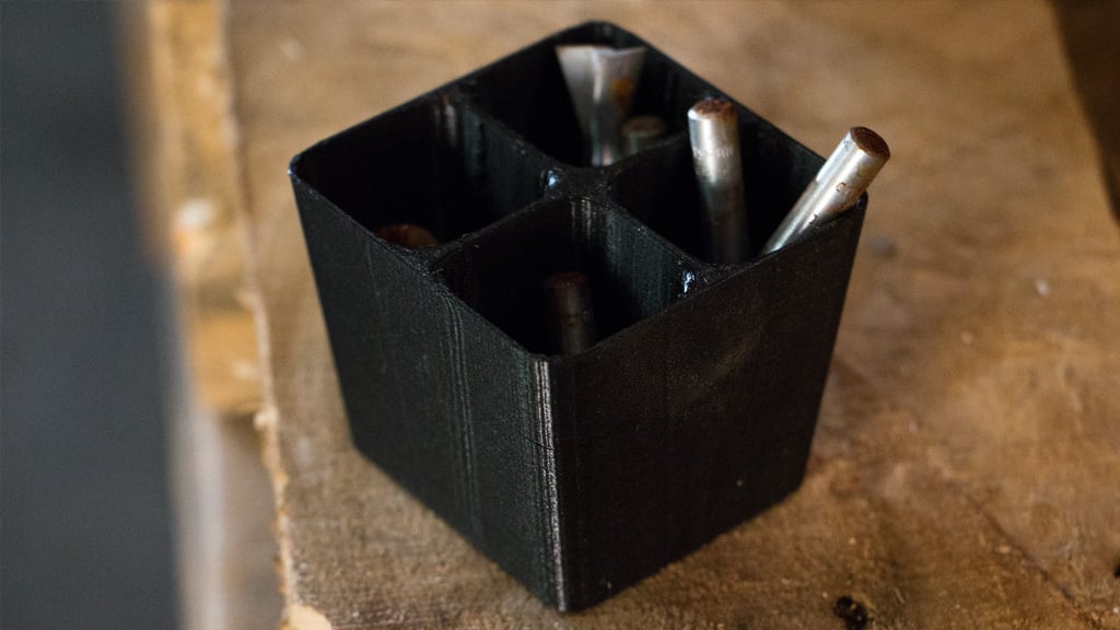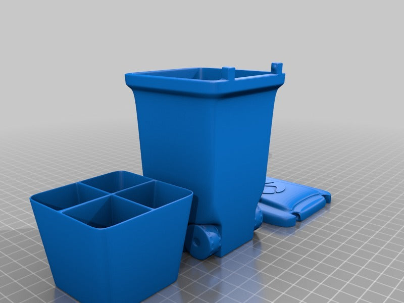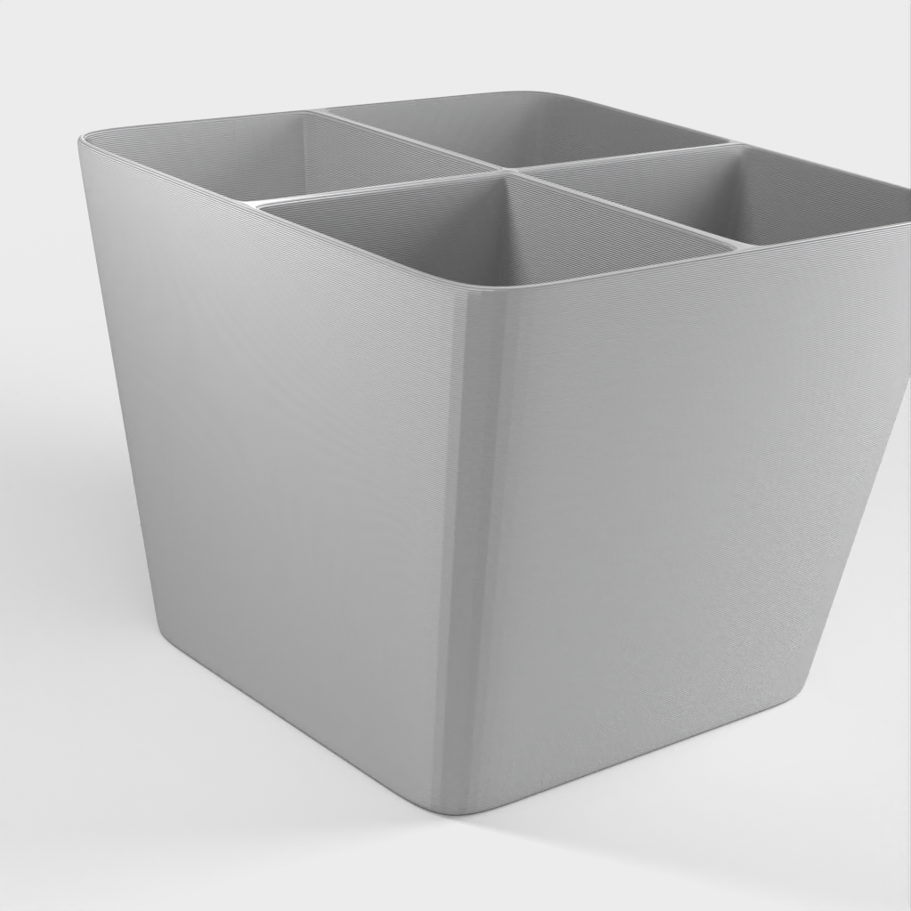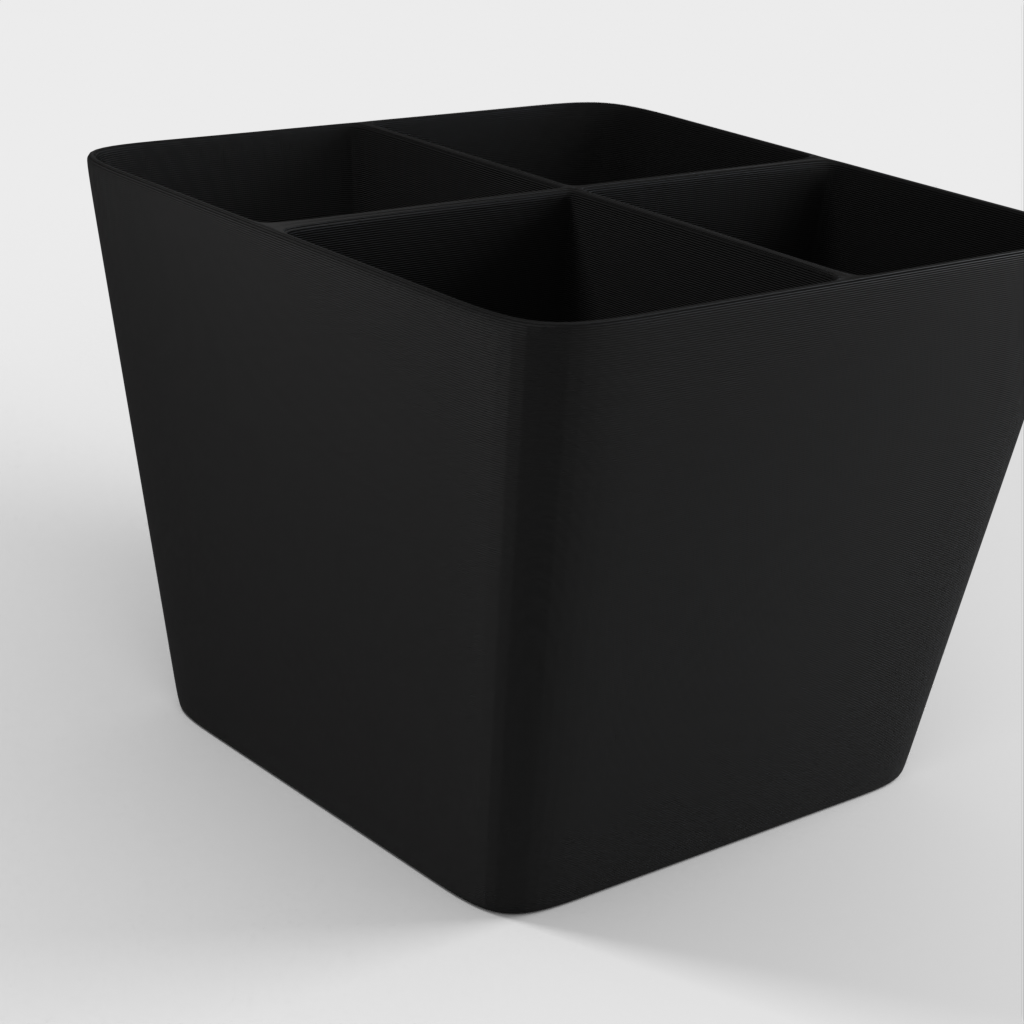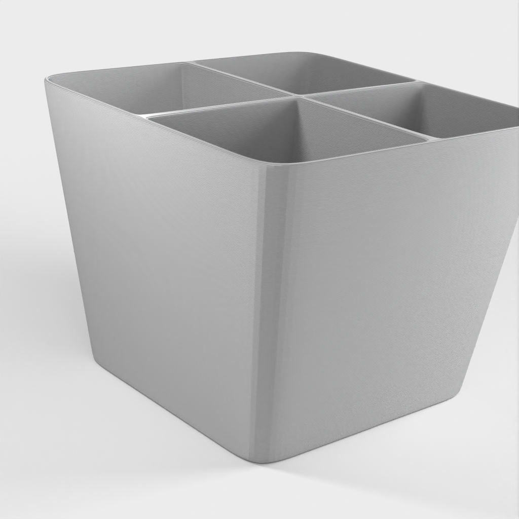 Een minibakje voor kleine voorwerpen zoals moeren en bouten. Print de onderdelen afzonderlijk voor verschillende materialen of allemaal tegelijk. Het deksel klikt vast en het inzetstuk is verwijderbaar. Ontworpen voor de lancering van ons nieuwe materiaal, Landfillament, dat is gemaakt van afval! Lees hier meer: https://www.youtube.com/watch?v=TSWXhDounRY