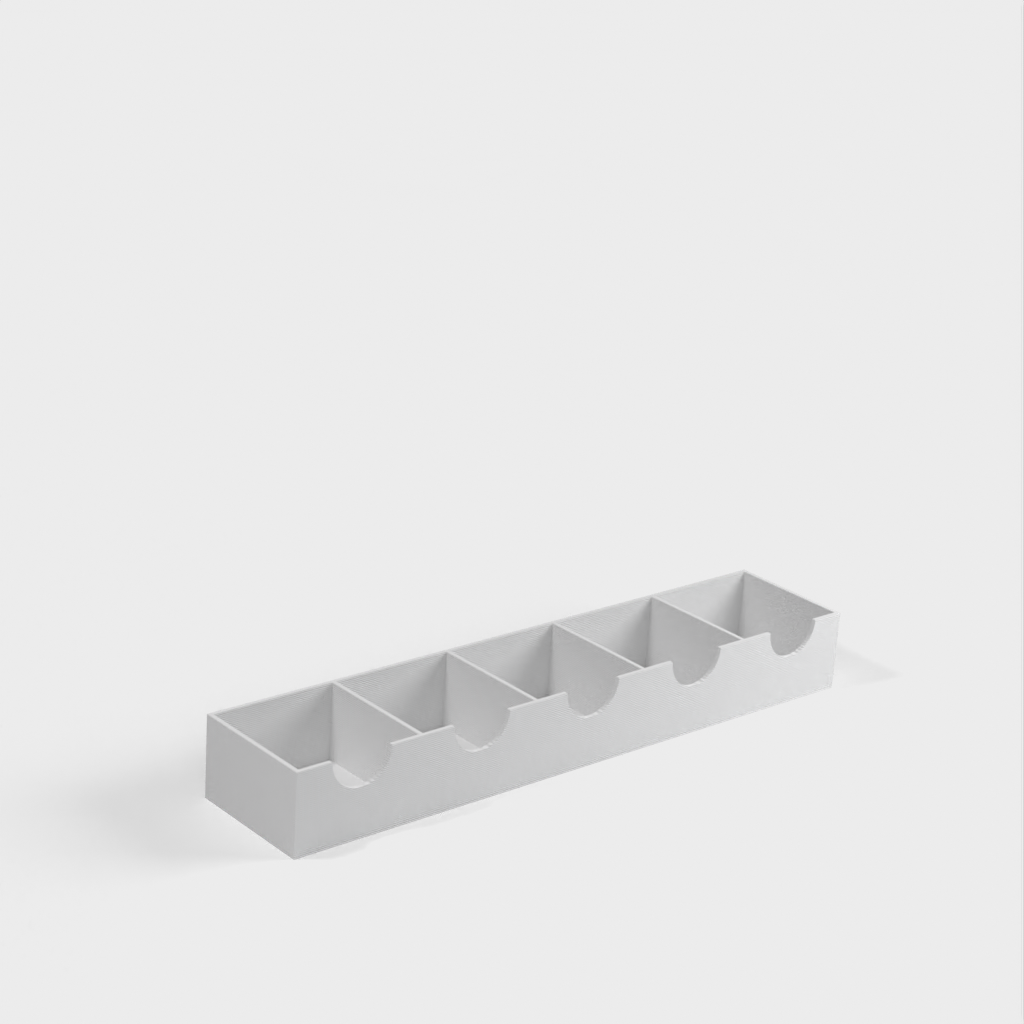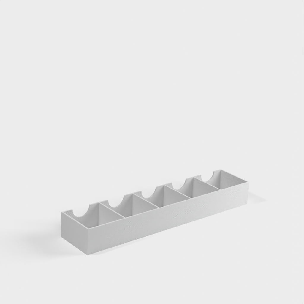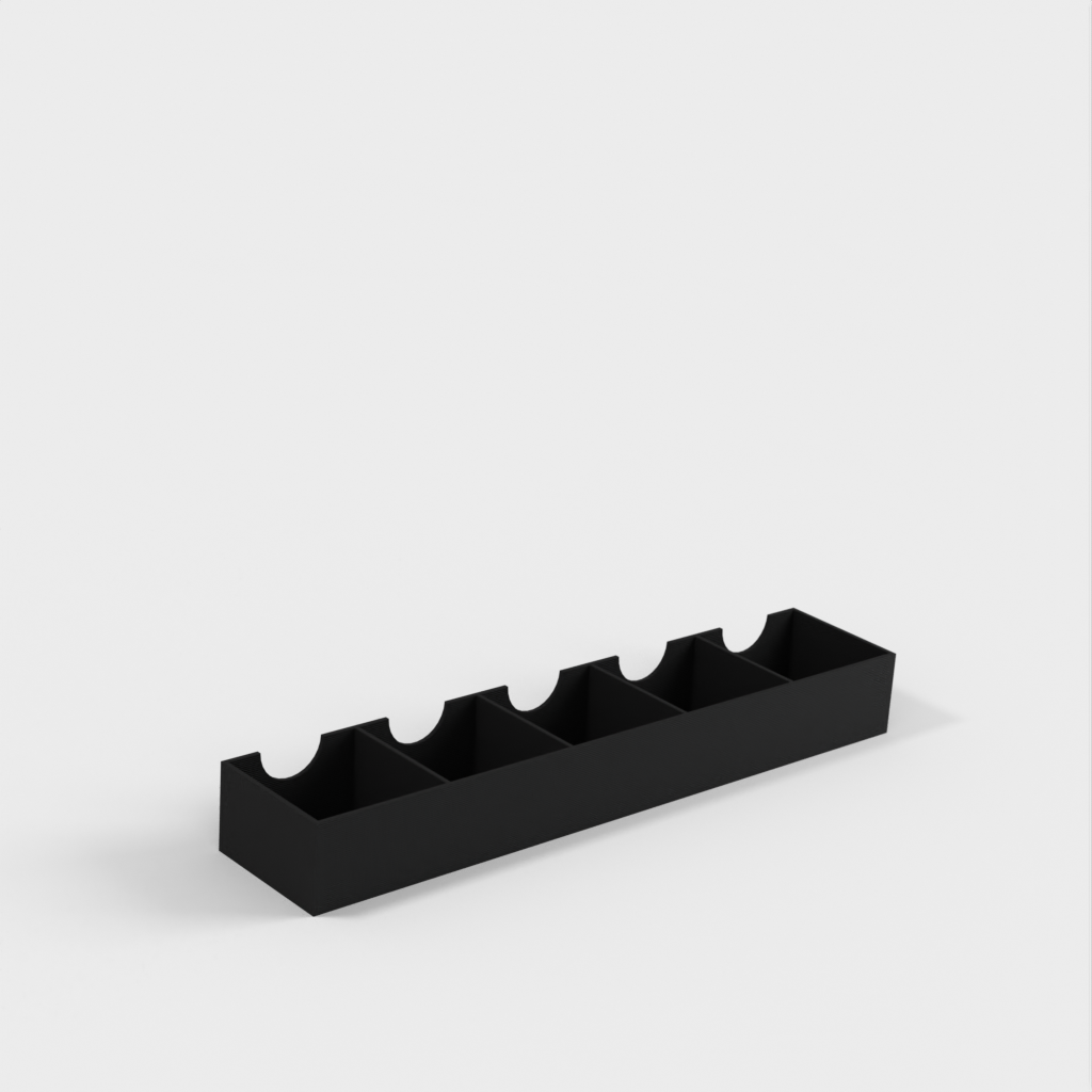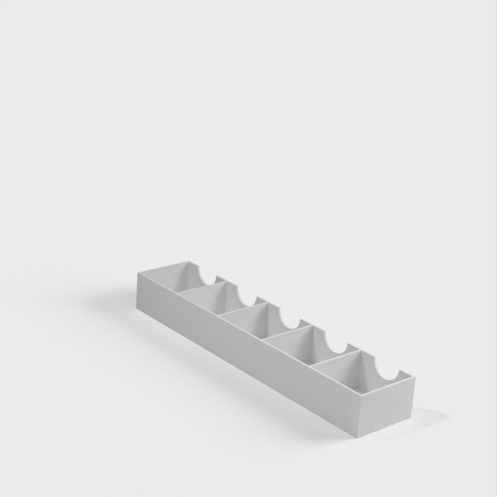 Deze houder kan eenvoudig op kastdeurtjes worden bevestigd met dubbelzijdig plakband voor eenvoudig en handig opbergen. Hij kan worden aangepast aan je specifieke behoeften met OpenSCAD en is geschikt voor vierkante flessen van 45 mm.