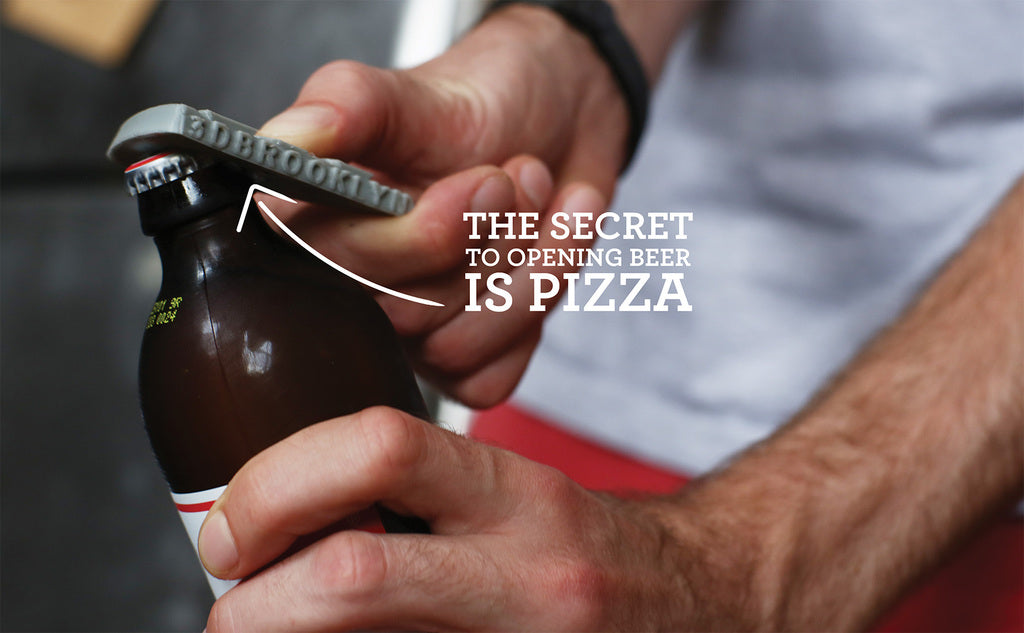 Flesopener in de vorm van een pizza
