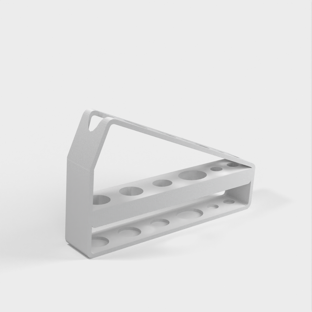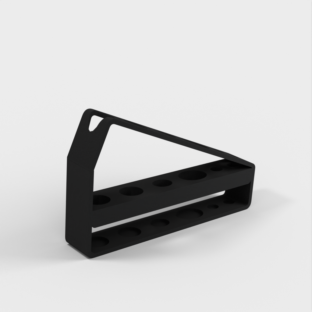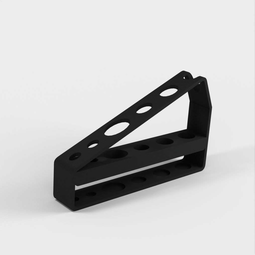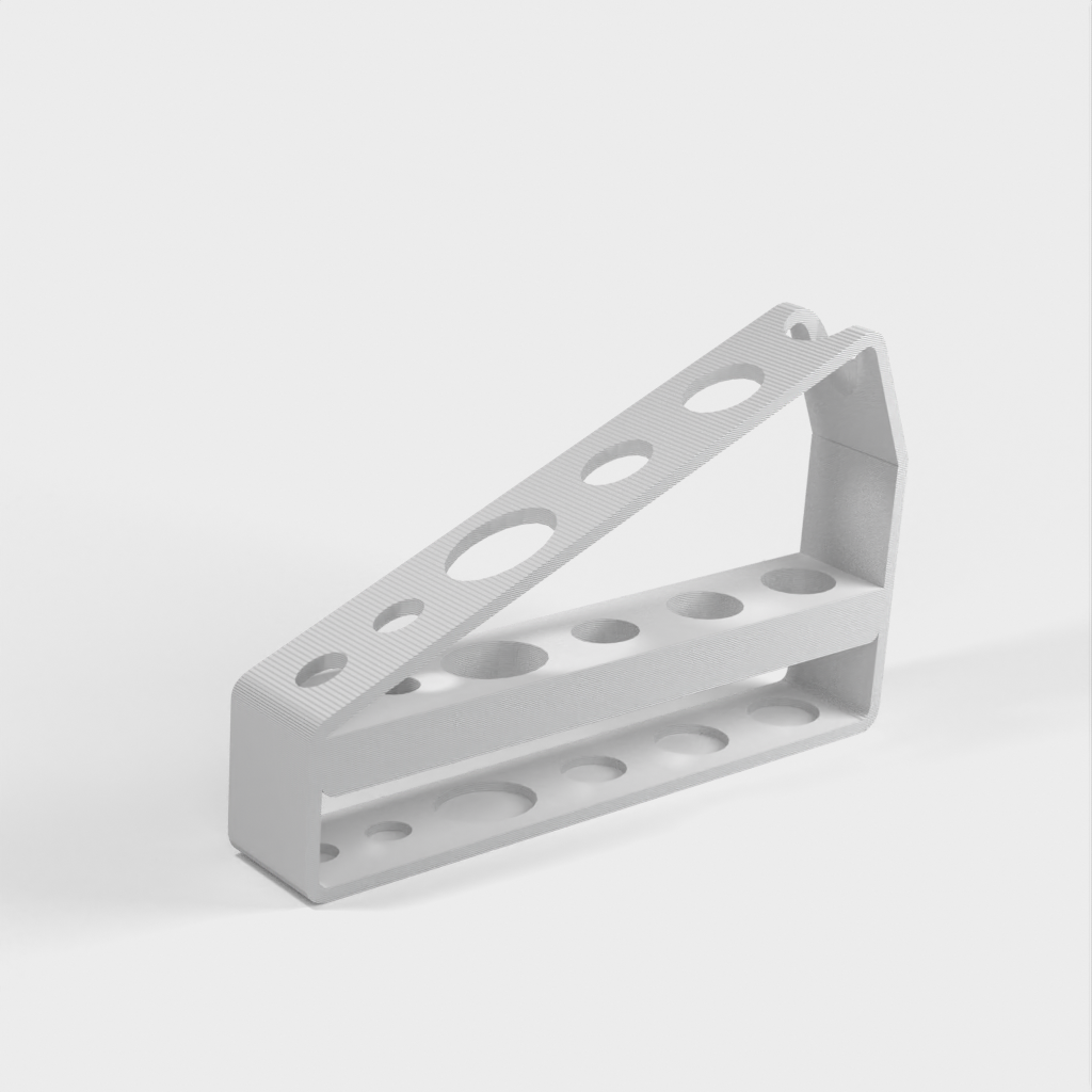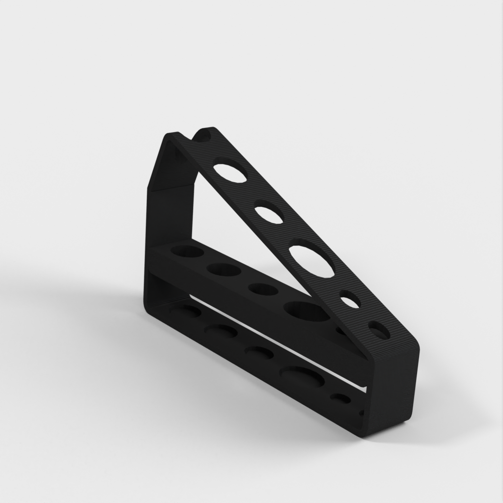 Een eenvoudige tandenborstelhouder voor 3 gewone Curaprox tandenborstels, 2 kleine borstels en 1 kinderborstel. Hij is aan de onderkant gelijmd voor meer stabiliteit. Dit houdt je badkamer georganiseerd en je tandenborstels op één plek.