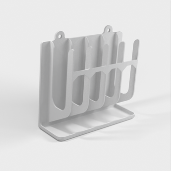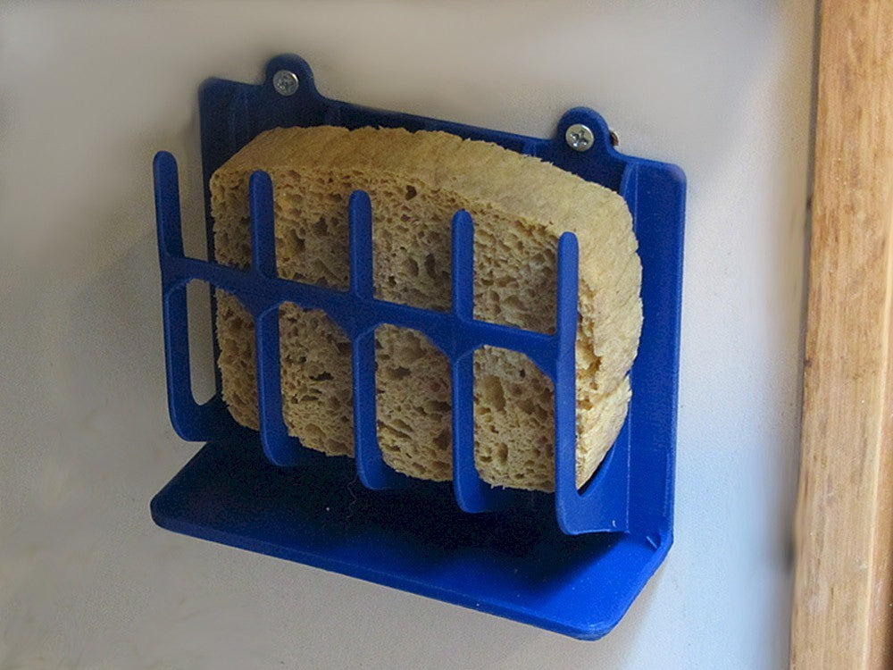 Deze wandsponshouder is perfect voor montage in het kastje onder de gootsteen. Hij heeft een geïntegreerde, makkelijk schoon te maken lekbak en een stevige achterrand om vocht weg te houden van de muur.
