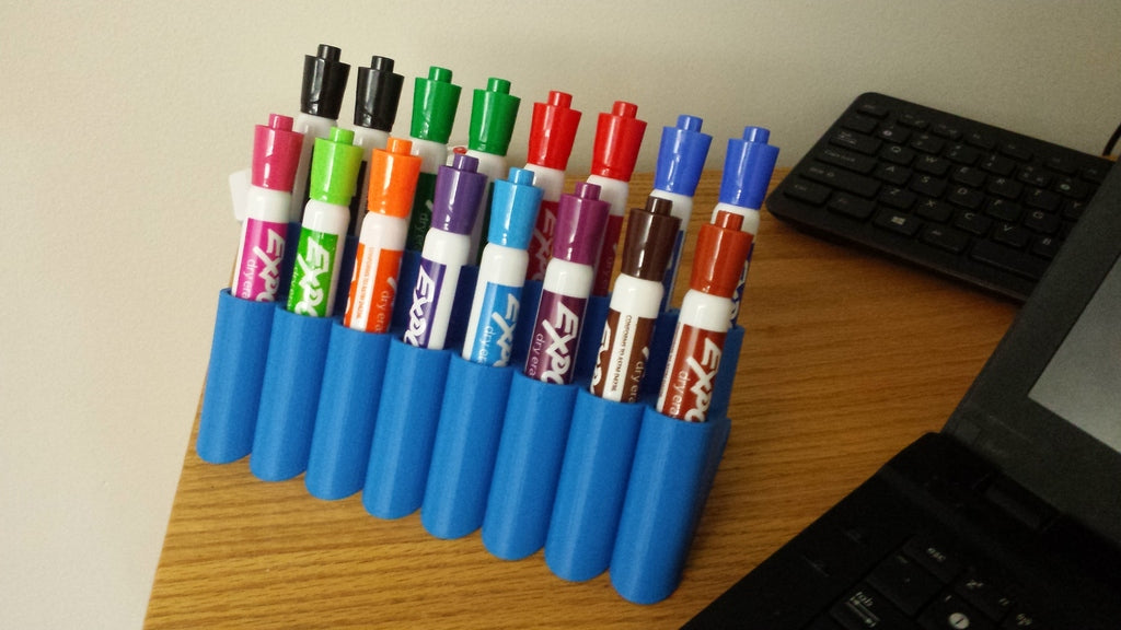 Eenvoudige en praktische houder voor whiteboard markers, zodat ze niet kwijtraken of verspreid over de hele kamer liggen. Deze houder zorgt ervoor dat uw whiteboard markers altijd binnen handbereik zijn wanneer u ze nodig heeft, waardoor uw werkplek of huis georganiseerder wordt.