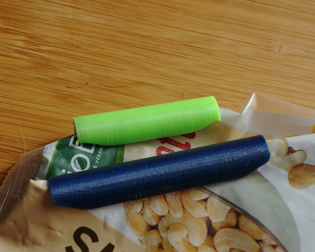 De Bag Clip is een handig hulpmiddel om je voedselzakken dicht te maken en de inhoud vers te houden. Hij is flexibel dankzij het PETg-materiaal en kan worden aangepast aan verschillende lengtes. Om te gebruiken, vouw je gewoon je zak en duw je de vouw door de gleuf. Om te openen trek je het gewoon weg. Dit is de ideale oplossing voor het sealen van chips, snoep en andere zakken met levensmiddelen.