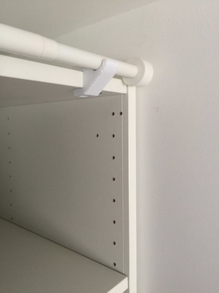 Dit is een gordijnroedesteun waarbij boren niet nodig is. Het is ontworpen om te passen bij de dikte van een IKEA kast en maakt een eenvoudige installatie van je gordijnroede mogelijk zonder gebruik van schroeven. Hij past op kasten met een dikte van 18 mm, maar er is ook een map voor 15 mm dikke kasten toegevoegd.
