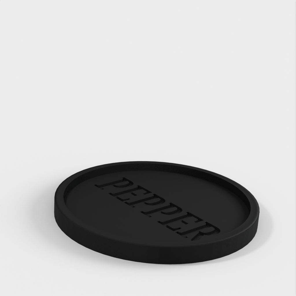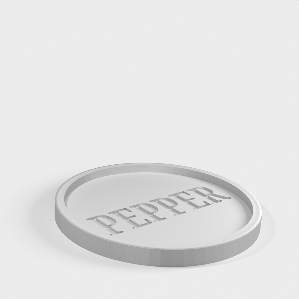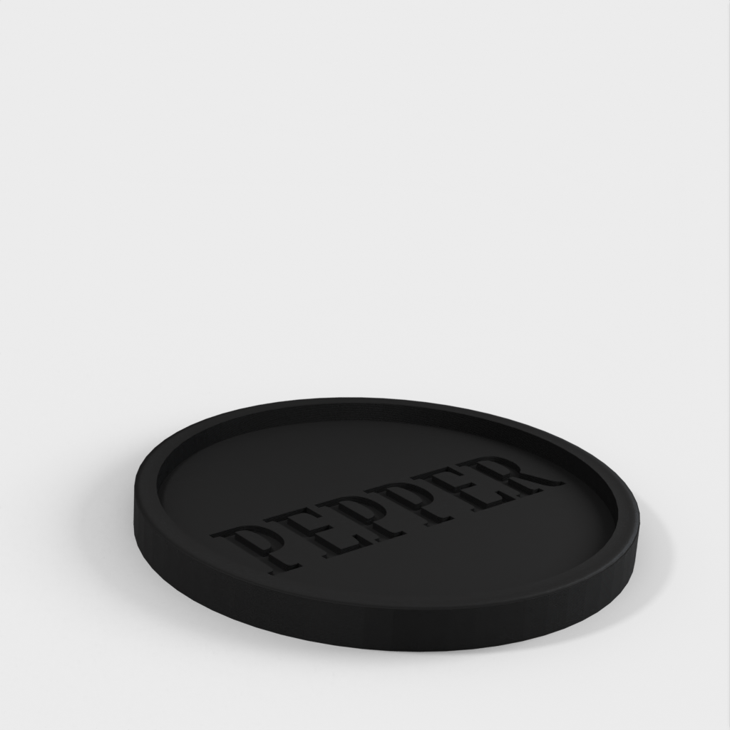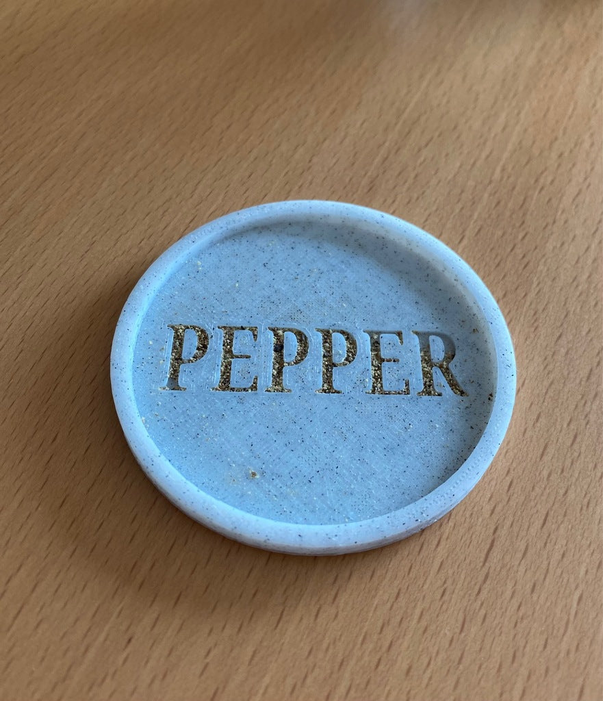 Een leuk detail is het woord 'peper' gedrukt als negatieve ruimte onderaan het bakje, dat opgevuld is met gemalen peper. Als de peper eenmaal volledig gevuld is, kunt u overwegen een laag voedselveilige hars toe te voegen om de peper in het woord 'peper' te vergrendelen.