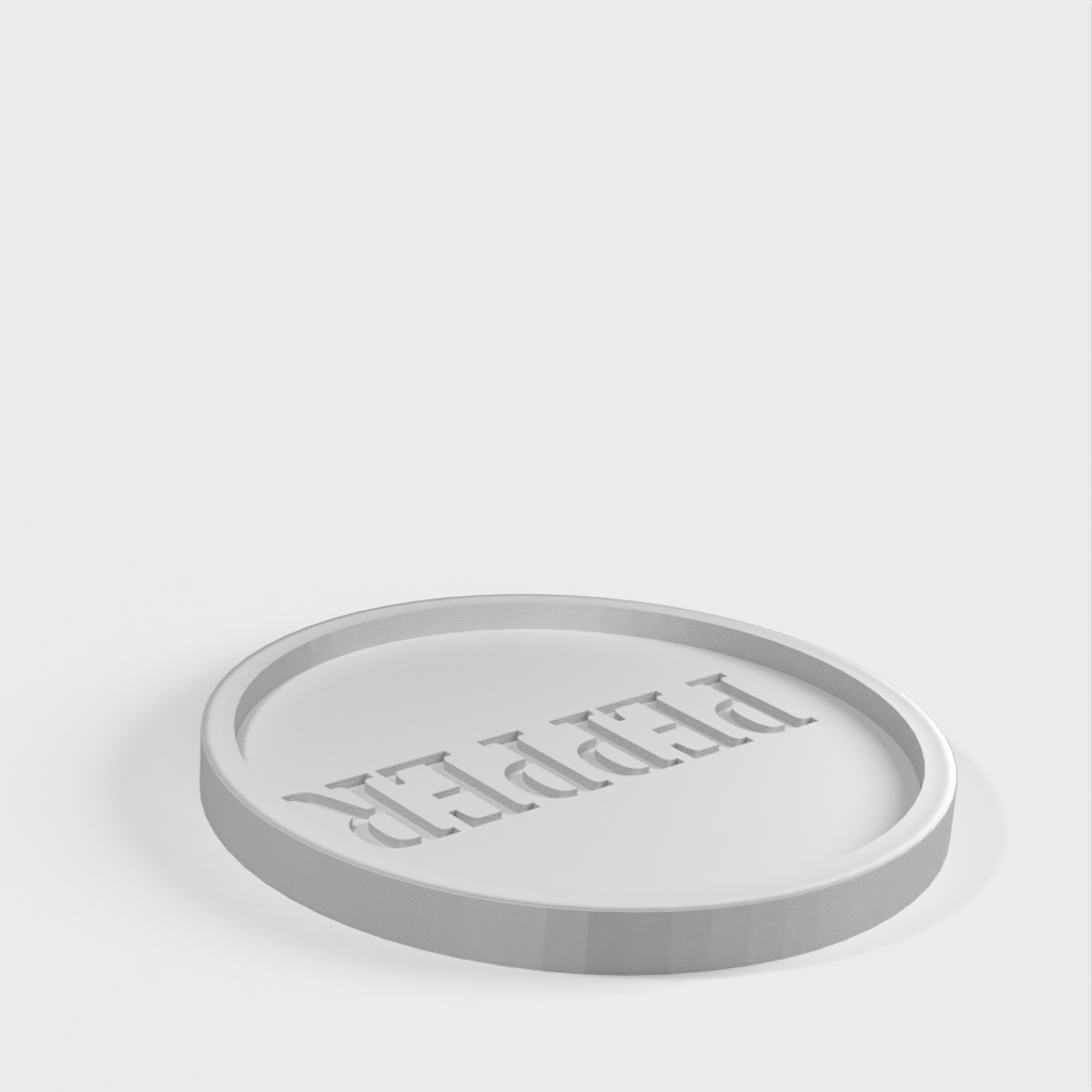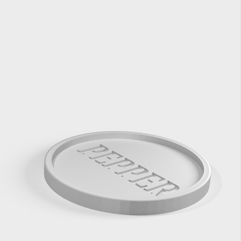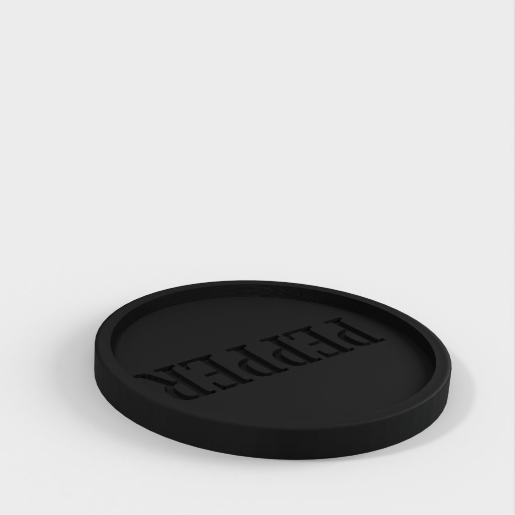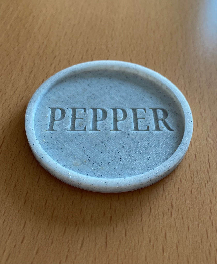 Een leuk detail is het woord 'peper' gedrukt als negatieve ruimte onderaan het bakje, dat opgevuld is met gemalen peper. Als de peper eenmaal volledig gevuld is, kunt u overwegen een laag voedselveilige hars toe te voegen om de peper in het woord 'peper' te vergrendelen.