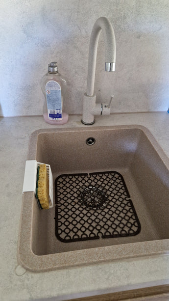 De sponshouder is speciaal ontworpen om op de rand van keramische of stenen gootstenen met een breedte van 25 mm te passen. De slimme Chevron-vormige drainagegaten zorgen voor een efficiënte afwatering, zodat uw spons droog en fris blijft.