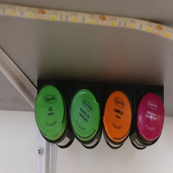 Bewaar je kruiden op een handige manier met de Ducros kruidenhouder. Deze houder maakt het eenvoudig om je kruiden te zien en te identificeren, dankzij de goed leesbare namen bovenaan. Met een schroefgrootte van 3,5 mm kun je de houder gemakkelijk monteren met slechts één schroef als je hem in een lijn plaatst, of met twee schroeven als hij alleen staat. Het is een ideale oplossing voor degenen die een georganiseerde en gemakkelijk toegankelijke kruidenplank in hun keuken willen.