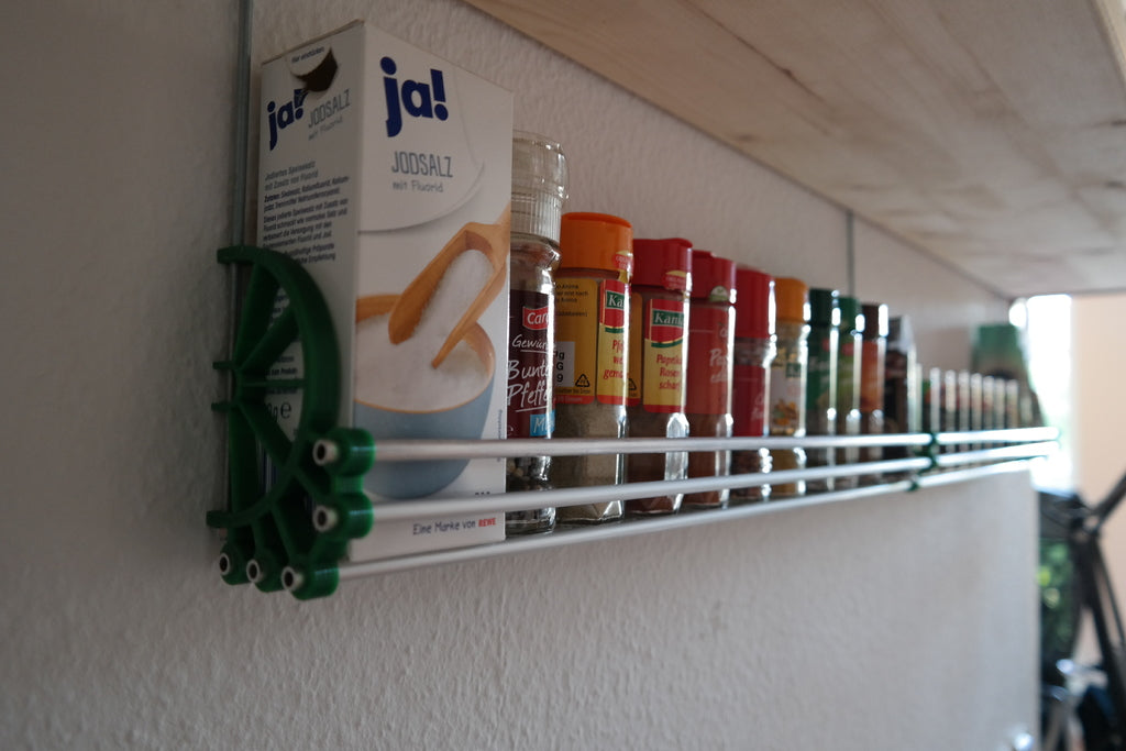 De kruidenplank is geconstrueerd met robuuste M6 aluminium buizen die zorgen voor een stabiele en duurzame structuur. De geïntegreerde M4 draadstangen en moeren dragen bij aan extra stevigheid, waardoor je kruiden veilig op hun plaats blijven. De speciaal ontworpen, geprinte verbindingsstukken maken de installatie eenvoudig en dragen bij aan een strakke en moderne uitstraling die in de meeste keukens past.