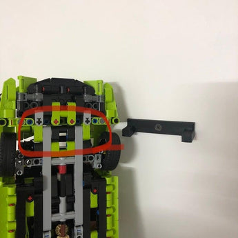 Eenvoudige 3D-geprinte wandmontage voor Lego Lamborghini Huracán model 42161. Het ontwerp van de montage zorgt voor een eenvoudige en veilige ophanging, zodat je je Lego Lamborghini aan de muur kunt laten zien. De afbeelding laat zien waar je het Lego model moet plaatsen.