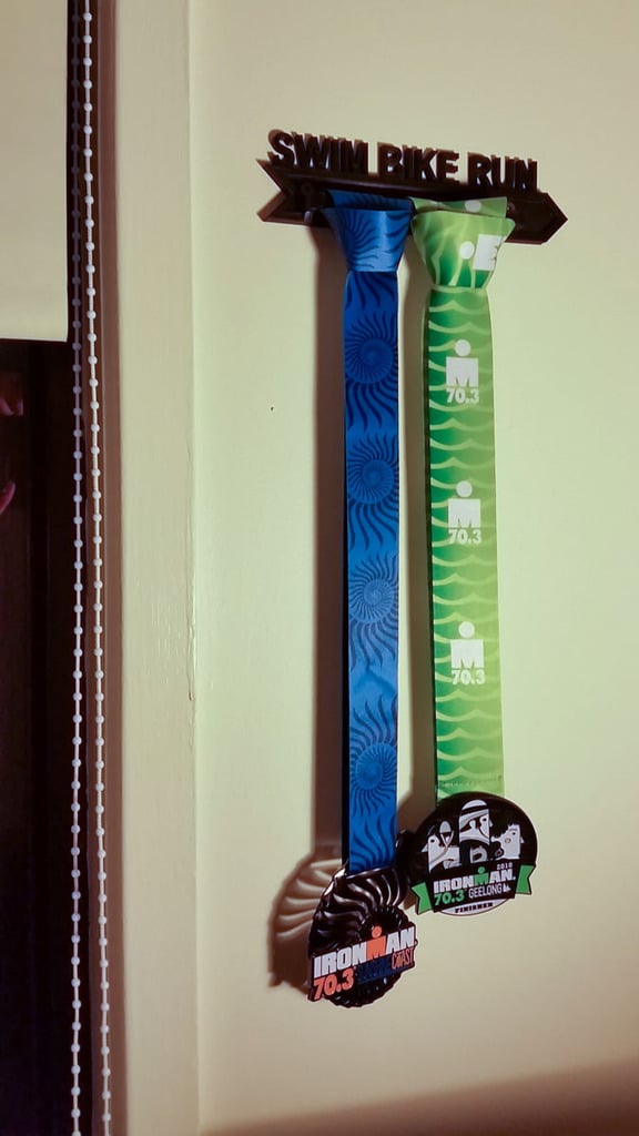Organiseer je triathlonmedailles effectief met deze medaillehouder, die speciaal is ontworpen om zwem-, fiets- en loopmedailles op te hangen. De houder biedt een elegante en praktische oplossing om je prestaties te tonen, zodat ze altijd zichtbaar en gemakkelijk toegankelijk zijn.