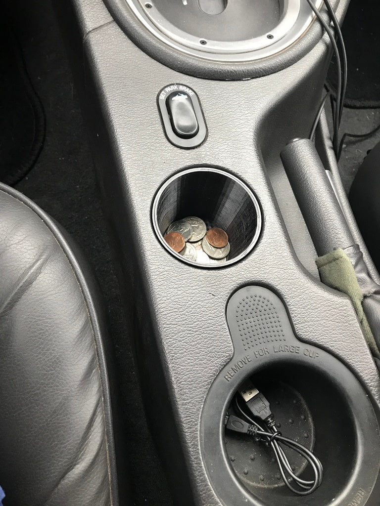 Deze bekerhouderinzet en fastfoodsaus houder voor in de auto is ontworpen om gemakkelijk munten en andere kleine voorwerpen op te bergen. Hij is ook voorzien van een deksel dat sausblikken van vergelijkbare grootte kan bevatten, zoals Burger King, McDonald's en dergelijke. De grootte kan worden aangepast aan verschillende bekerhouders. Maak uw auto georganiseerder met deze handige bekerhouderinzet en fastfoodsaus houder.