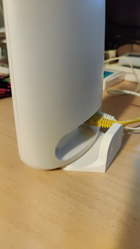 Eenvoudige muurbeugel voor de volgende Netgear Orbi AX1800, weggestopt onder de router.
