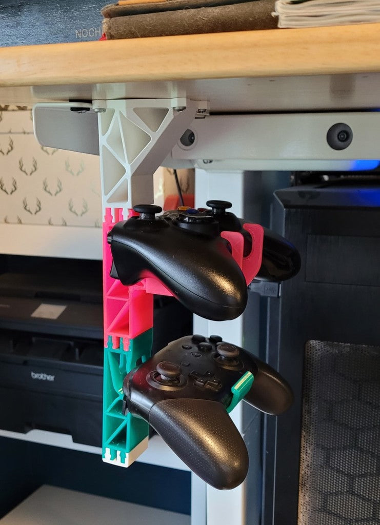 Optimaliseer je werk- of speelruimte met deze modulaire controllerhouder, die is ontworpen voor discrete montage onder het bureau. Deze innovatieve oplossing maakt waardevolle ruimte op het bureaublad vrij en houdt je controller georganiseerd en gemakkelijk toegankelijk wanneer je hem nodig hebt. De houder is volledig compatibel met bestaande controllerbeugels van het originele standaardontwerp en populaire remixen, waardoor een naadloze integratie in je huidige setup wordt gegarandeerd. Hij is ook bijzonder geschikt voor het opbergen van Xbox 360-controllers.