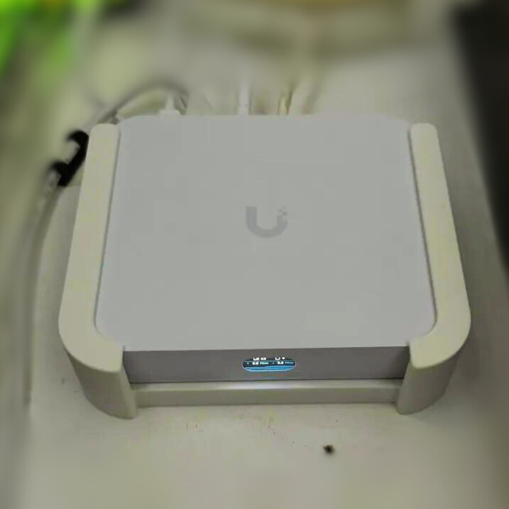 God holder, men synd at man ikke har valgt samme plastfarve som UniFi Gateway. Skruehullerne er små og desværre ikke undersænkede. Derfor er der ikke rigtig plads til skruerne.