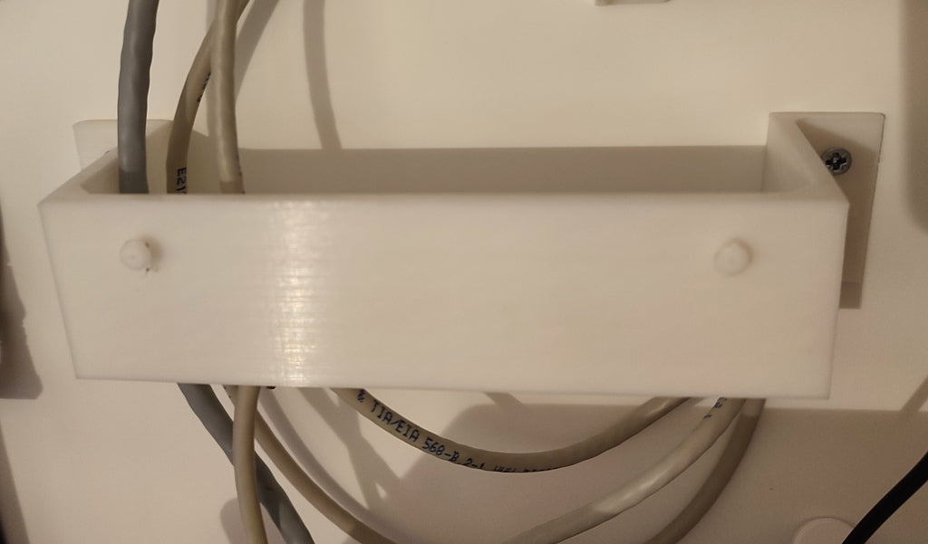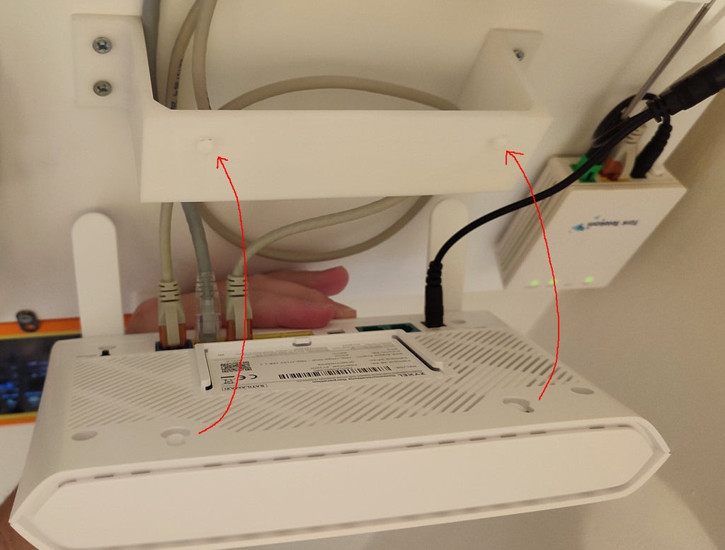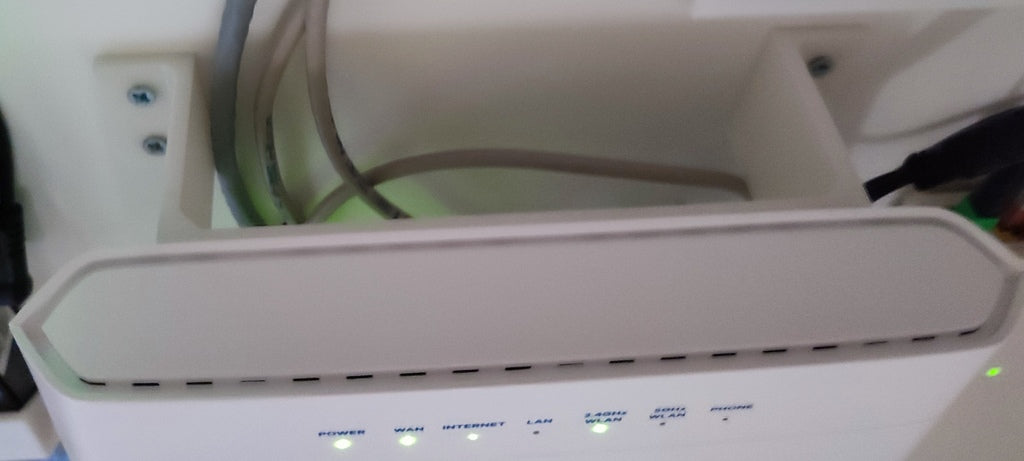 Dit is een 3D-geprinte adapter om de Zyxel EX3301-T0-modem aan de muur te bevestigen. De adapter biedt voldoende ruimte (5,5 cm) tussen de modem en de muur om alle kabelverbindingen aan de achterkant te maken.