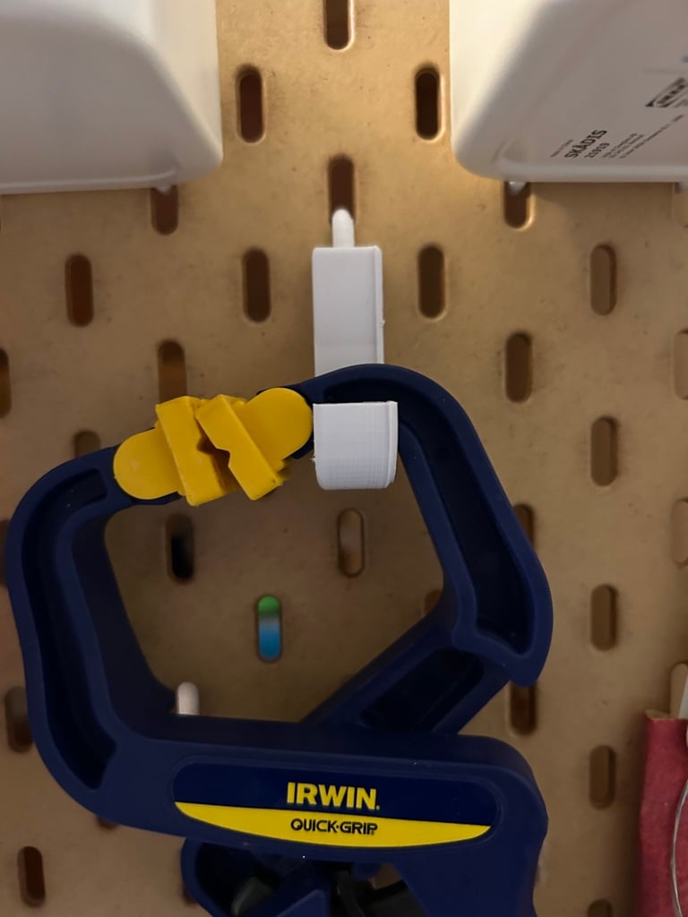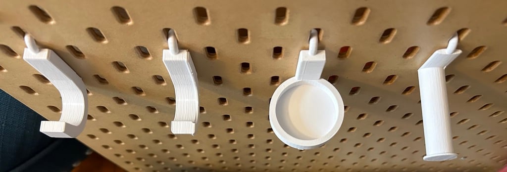 Dit is een collectie speciaal ontworpen wasknijpers voor het IKEA SKÅDIS wasbord. Elke knijper is ontworpen voor verschillende gereedschappen en voorwerpen met verschillende afmetingen. De knijpers hebben een langere haak voor bredere voorwerpen, een spoel- of tapehouder en een speciale ronde haak om een warmtepistool aan op te hangen. Daarnaast is de basis van de haak ook apart verkrijgbaar, die kan worden aangepast aan je specifieke behoeften. Elke haak en houder is ontworpen om perfect te passen in de IKEA SKÅDIS pegboard gaten, die ongeveer 6 mm meten en 34 mm uit elkaar staan.