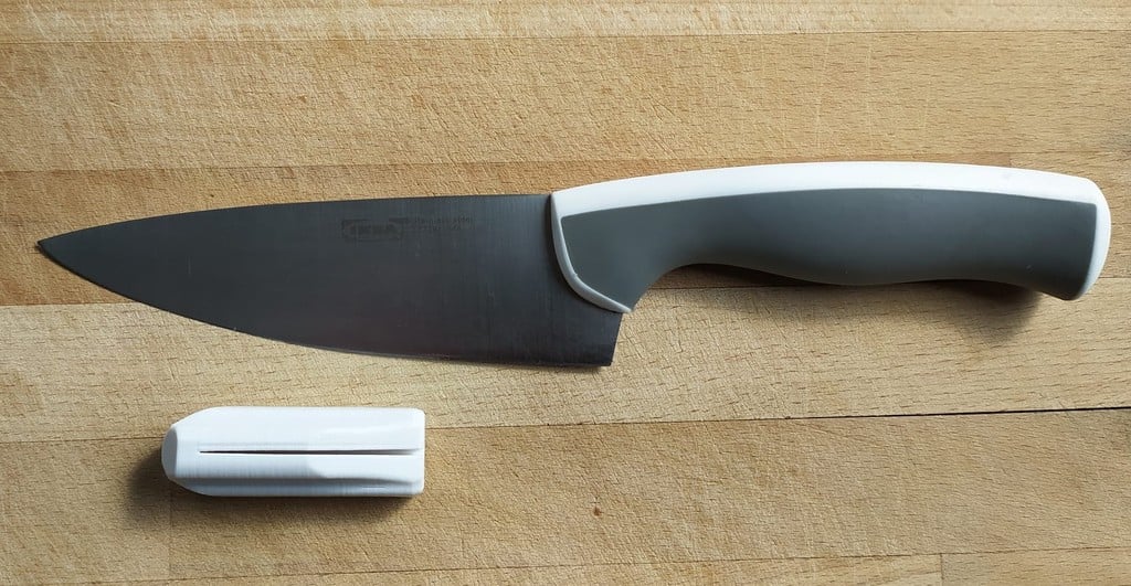 Het is ontworpen om te passen op de meeste mesgeometrieën, zolang het lemmet niet dikker is dan 1,8 mm. Als uw mes een dikker lemmet heeft, kunt u de maat van het handvat aanpassen. Het handvat kan eenvoudig worden verwijderd door het om de punt te draaien, wat het eenvoudig maakt om op te bergen of zonder te gebruiken.