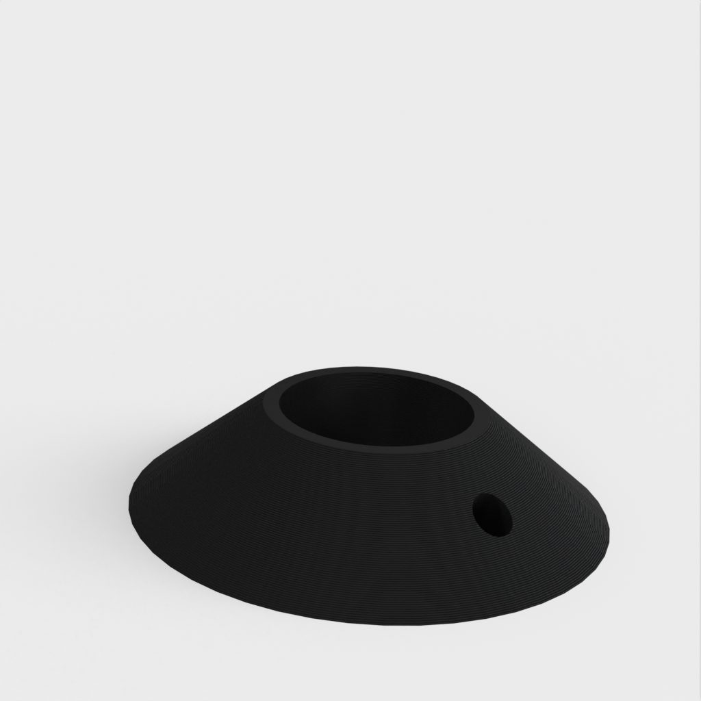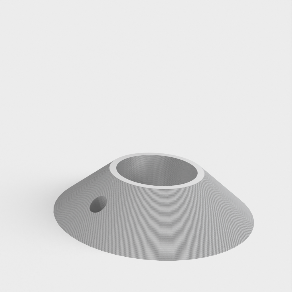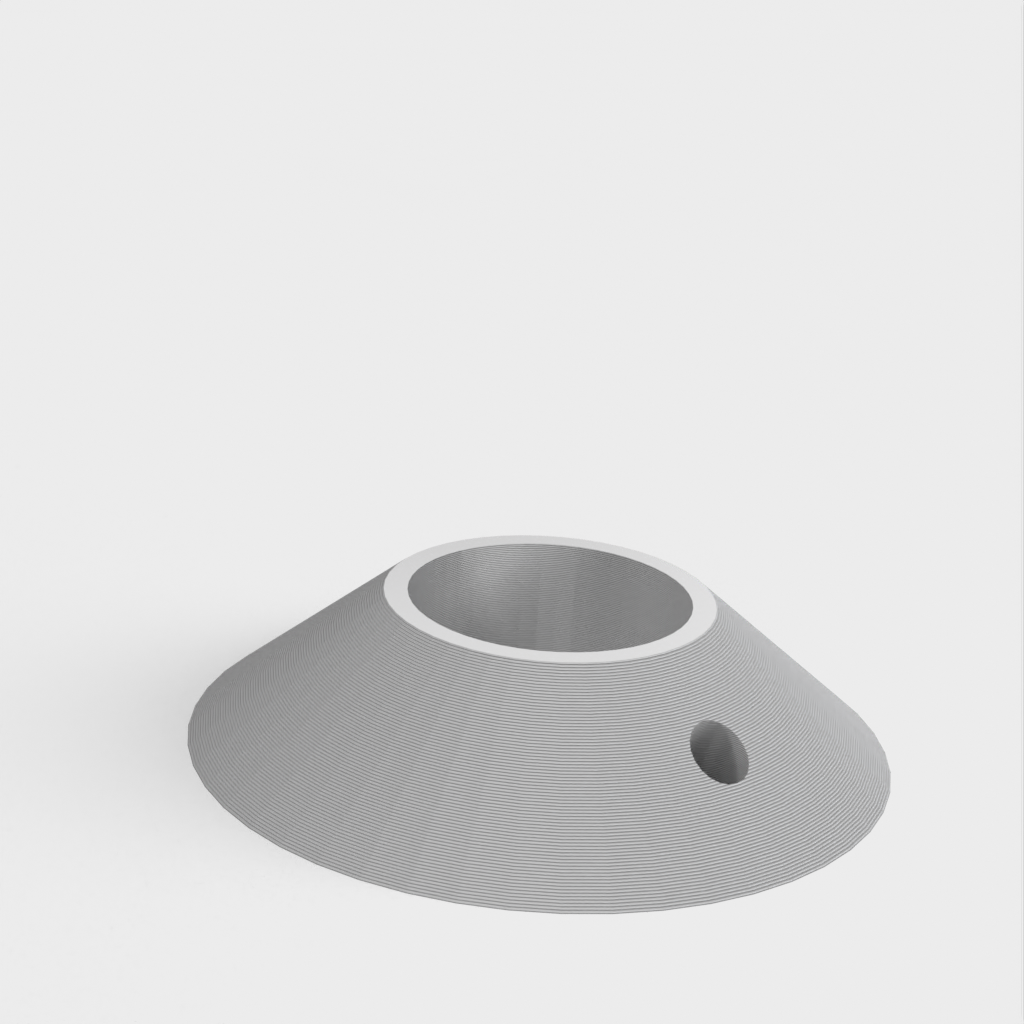 Buitenmaat 45mm, binnenrand 21mm, binnengat 18mm. De rozet kan worden aangepast aan verschillende maten door de Tinkercad link te volgen: https://www.tinkercad.com/things/2lv649g1PzM