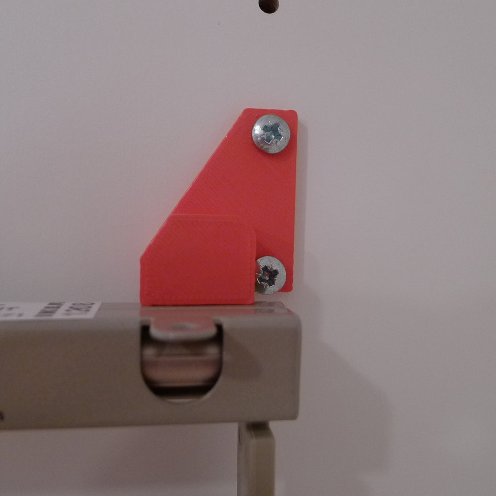 Beugels voor IKEA PAX KOMPLEMENT uittrekbaar kledingrek. Deze beugels zijn ontworpen om de KOMPLEMENT-rail aan te passen aan de 32 mm planknoppen op de kast. Ze worden gebruikt om de rails aan de zijkant van de kast te monteren in plaats van aan de onderkant van een plank. Dit biedt een meer praktische manier om kleding in je PAX-systeem te ordenen.