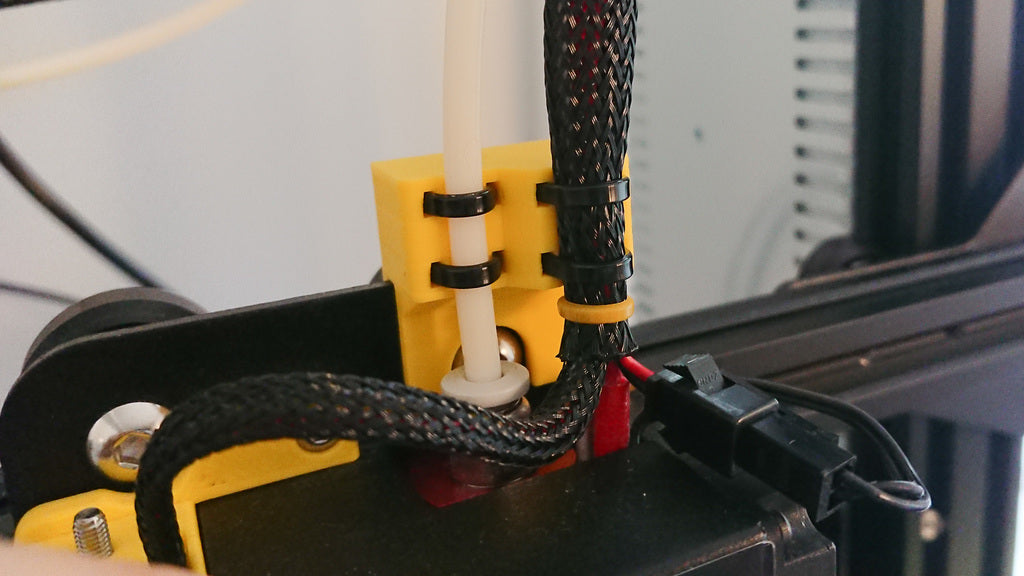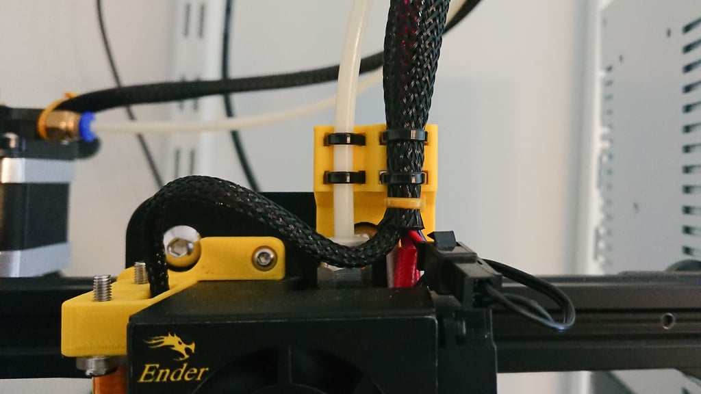 Deze praktische "snap-in" houder is ontworpen om uw Creality Ender 3 3D-printer te optimaliseren door de hotend bowdenbuis en alle bijbehorende kabels te organiseren. Door deze componenten te verzamelen en vast te zetten, krijgt u een meer overzichtelijke en veilige opstelling van uw printer. Het fungeert als een efficiënte kabelhouder en helpt verstrengeling en potentiële schade die tijdens het printproces kan optreden te voorkomen.