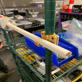 Deze Wire Rack-klem is ontwikkeld om een praktische en georganiseerde opslagoplossing te creëren voor diverse kabelhaspels. Het maakt een eenvoudige montage van een 1/2 inch PVC-buis op een racksysteem mogelijk, wat een overzichtelijke en gemakkelijk toegankelijke manier biedt om uw kabels op te bergen. De PVC-buis klikt gemakkelijk op zijn plaats in de klem, waardoor de spoelen veilig worden vastgehouden, maar tegelijkertijd gemakkelijk te verwijderen en terug te plaatsen zijn wanneer dat nodig is. Elke wire clips is ontworpen om te worden bevestigd met vier #8 hoofdschroeven en moeren, wat zorgt voor een stabiele en duurzame installatie, of het nu in een werkplaats of op een hardwarewagen is.