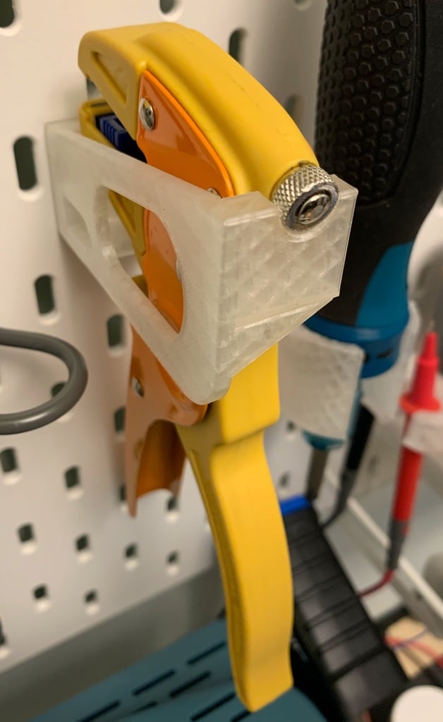 Deze praktische houder is gemaakt om uw draadstriptang een speciale plek te geven op uw Ikea Skadis prikbord. Het helpt om uw gereedschap georganiseerd en gemakkelijk toegankelijk te houden, wat essentieel is voor een efficiënte en opgeruimde werkplek. Wanneer uw draadstriptang zijn vaste plaats heeft, hoeft u er niet meer naar te zoeken en kunt u zich concentreren op uw werk met bedrading.