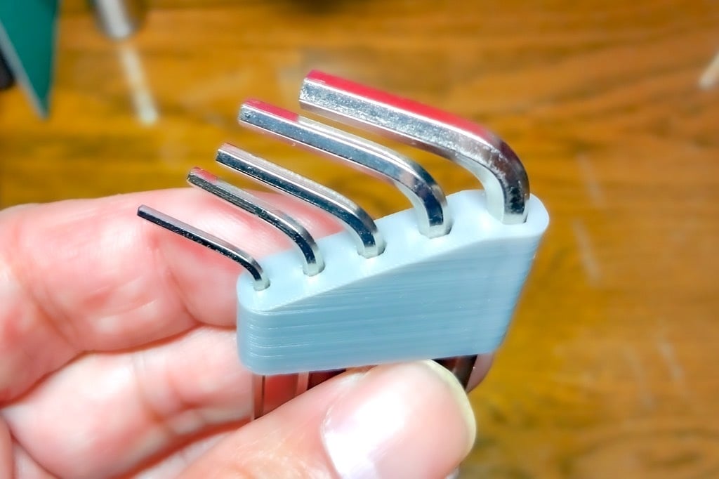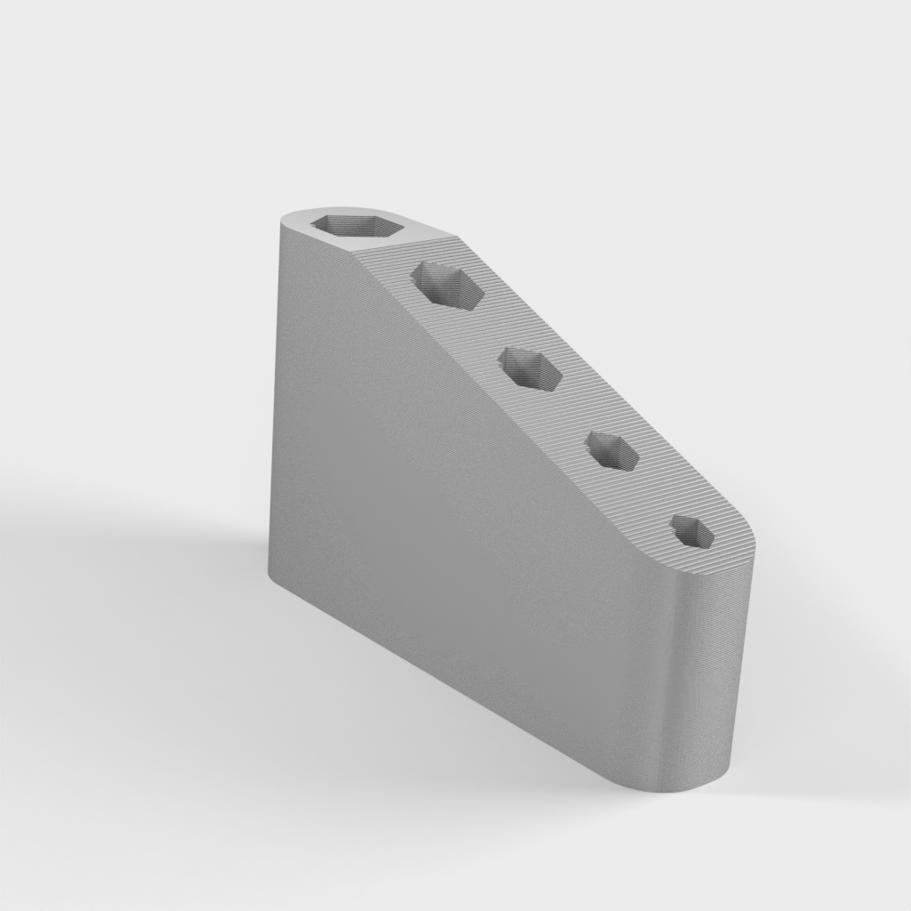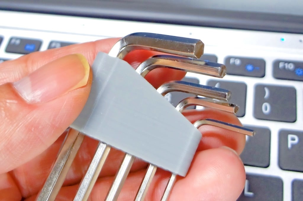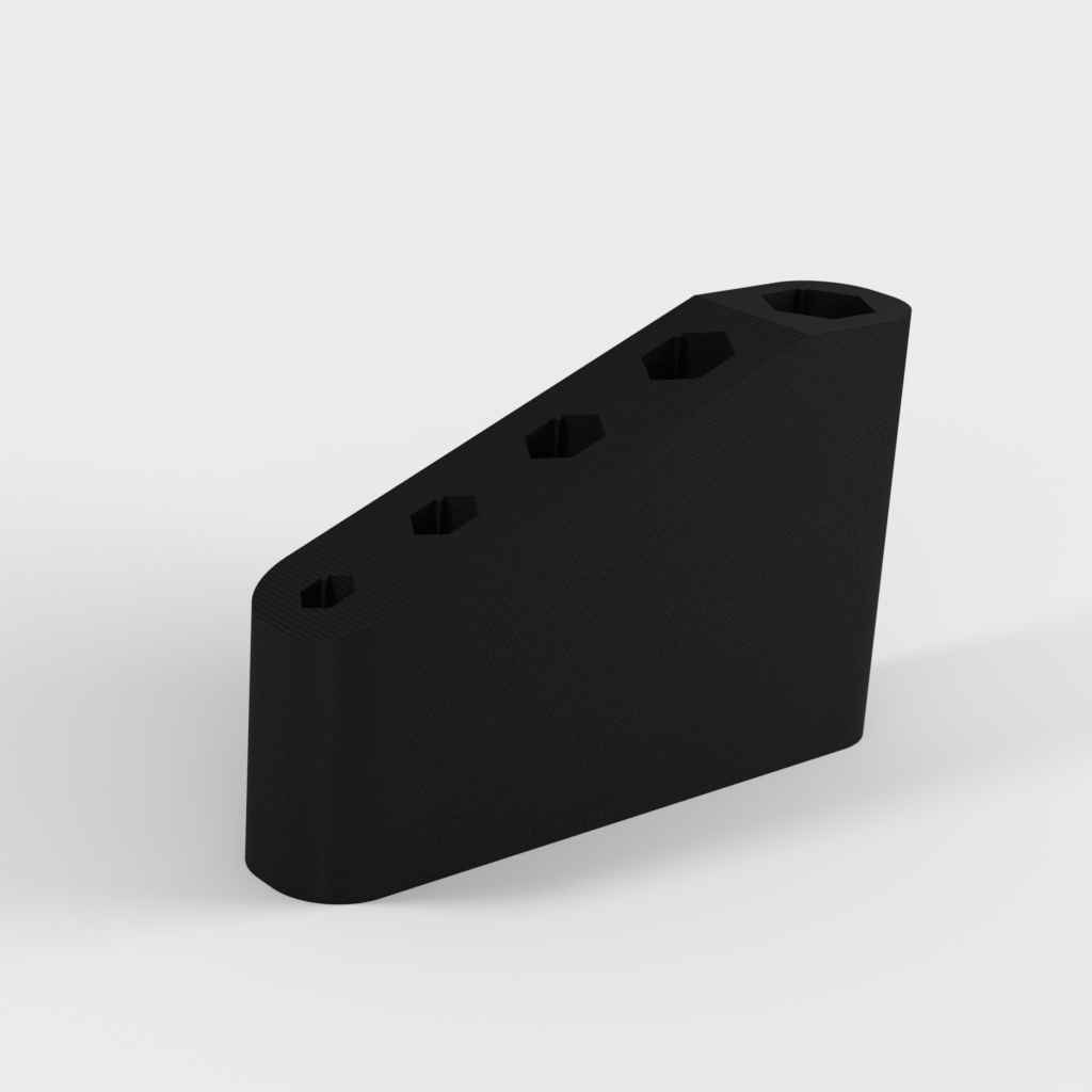 Eenvoudige en compacte hex-sleutelhouder. Deze kleine zeskantige sleutelhouder kan in totaal 5 zeskantsleutels (1,5 mm / 2,0 mm / 2,5 mm / 3,0 mm / 4,0 mm) bevatten, die worden meegeleverd met een algemene 3D-printer. Hij is compatibel met Ender3 V2, Artillery Genius, Kingroon KP3S enz.