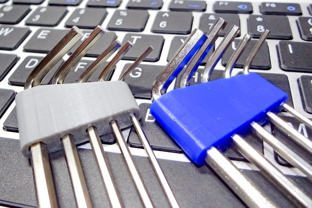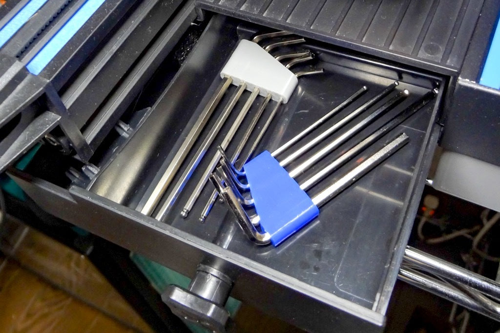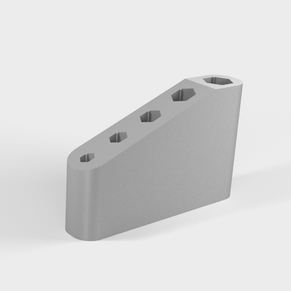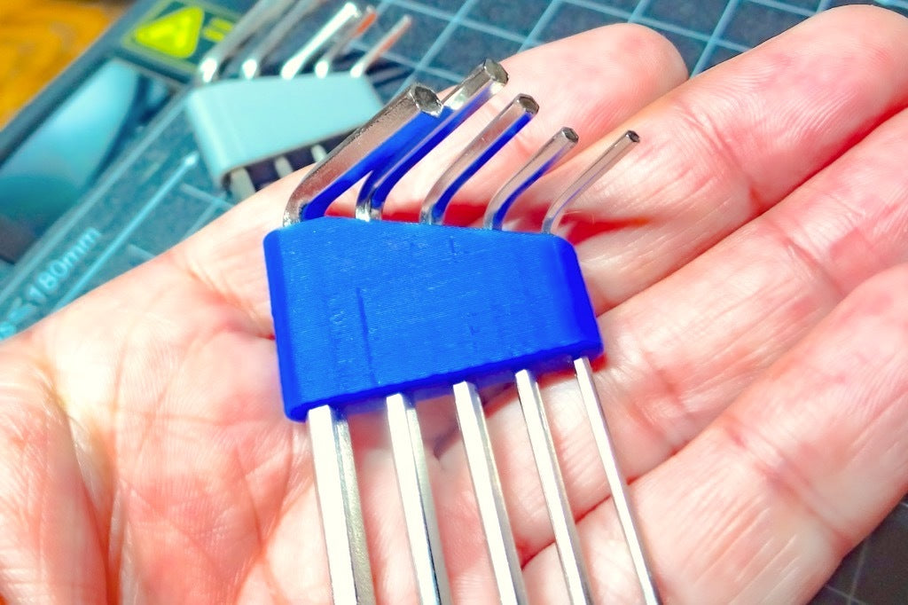 Eenvoudige en compacte hex-sleutelhouder. Deze kleine zeskantige sleutelhouder kan in totaal 5 zeskantsleutels (1,5 mm / 2,0 mm / 2,5 mm / 3,0 mm / 4,0 mm) bevatten, die worden meegeleverd met een algemene 3D-printer. Hij is compatibel met Ender3 V2, Artillery Genius, Kingroon KP3S enz.