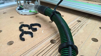 Of u nu Festool-gereedschap of andere merken gebruikt, deze kabelclip zorgt ervoor dat uw stroomkabel veilig op zijn plaats wordt gehouden en uit de buurt van het werkblad blijft. Hij is geoptimaliseerd om perfect op stofzuigerslangen met een diameter van 33/34 mm te passen, waardoor het een ideale accessoire is voor iedereen die orde en overzicht in de werkplaats wil behouden.