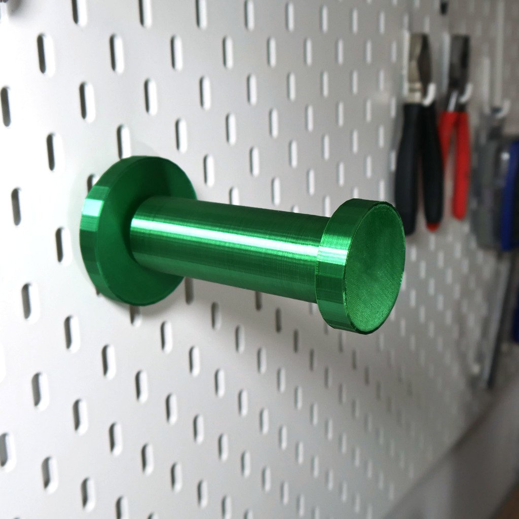 De Skadis spoelhouder is een eenvoudig te monteren en demonteren hulpmiddel dat perfect past bij je IKEA Skadis prikbord. Het bestaat uit drie delen die in elkaar geschroefd kunnen worden om het eenvoudig aan te passen of te vervangen. De speciale groene kleur is gemaakt met 3DJake Ultra Satin. Het is de voor de hand liggende keuze om je spoel op zijn plaats te houden, hangend aan je prikbord.