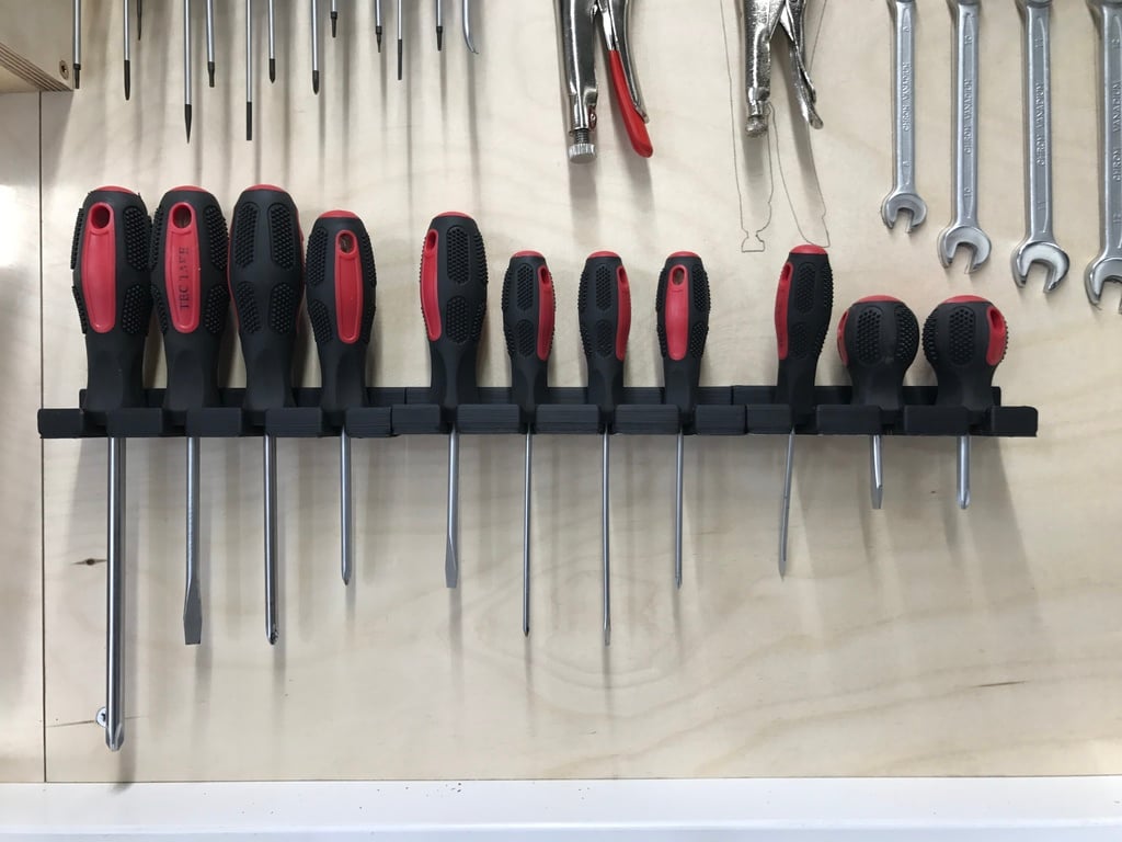 De schroevendraaierhouder is de beste oplossing om je schroevendraaiers te organiseren en opgeruimd te houden. Dankzij de eenvoudige opslag van je schroevendraaiers zijn ze gemakkelijk toegankelijk wanneer je ze nodig hebt. De houder kan naar behoefte worden aangepast met behulp van de meegeleverde Onshape-link, waardoor hij ideaal is voor zowel privéwerkplaatsen als professionele werkplekken.