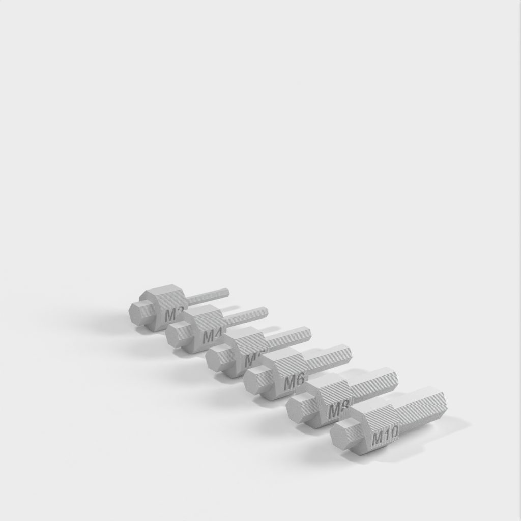 Hex inbussleutelset, OMT², in metrische maten van M3 tot M10. Deze set is compatibel met elke standaard bithouder en/of OMT²-handgreep. De set bevat de 6 meest gebruikte inbussleutels. De voordelen van deze set zijn dat hij compact, gemakkelijk op te bergen en te gebruiken is. De set is handig in veel situaties waarin je een inbussleutel nodig hebt. Houd er rekening mee dat deze set nooit een volledige set metalen inbussleutels zal vervangen, maar in sommige gevallen kan hij van pas komen.