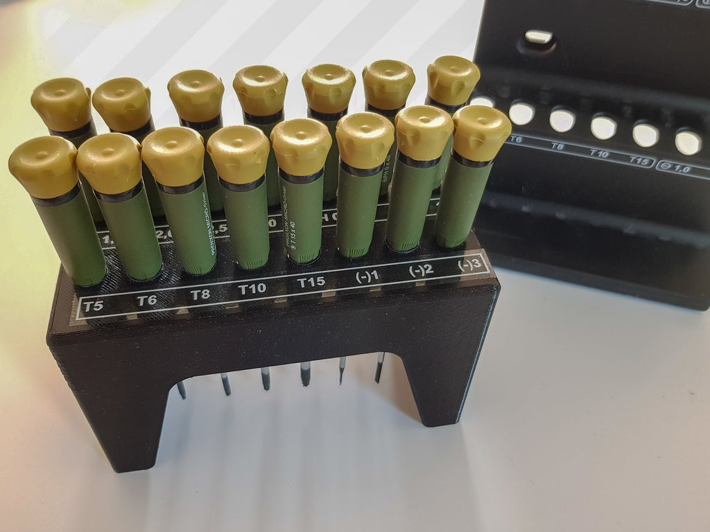 Dit is een schroevendraaierhouder voor Proxxon schroevendraaiersets. Hij is ontworpen om mooi op tafel te staan, alhoewel de set oorspronkelijk bedoeld is voor wandmontage. De houder voorkomt dat schroevendraaiers op de grond vallen en maakt het gemakkelijker om je gereedschap te ordenen.